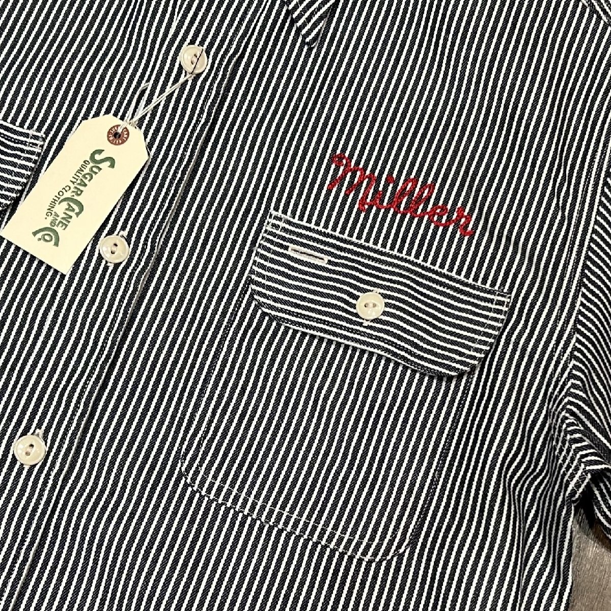 シュガーケーン ヒッコリーストライプ 刺繍ワークシャツ アメカジ SC37909 119)ブラック Mサイズ トップス