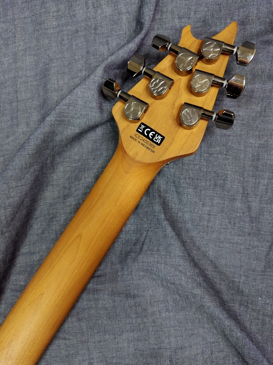 グラファイト補強ロッドを内蔵したボルトオン式のベイクドメイプルネックは環境変化に優れた耐性があり、