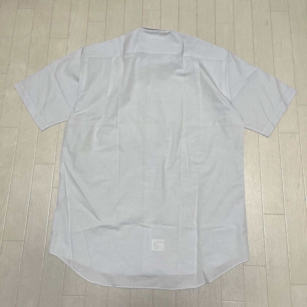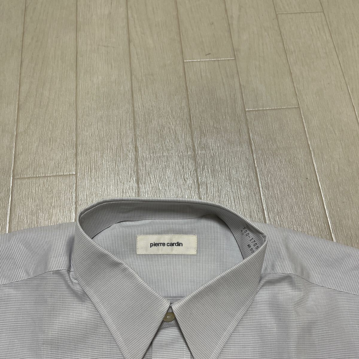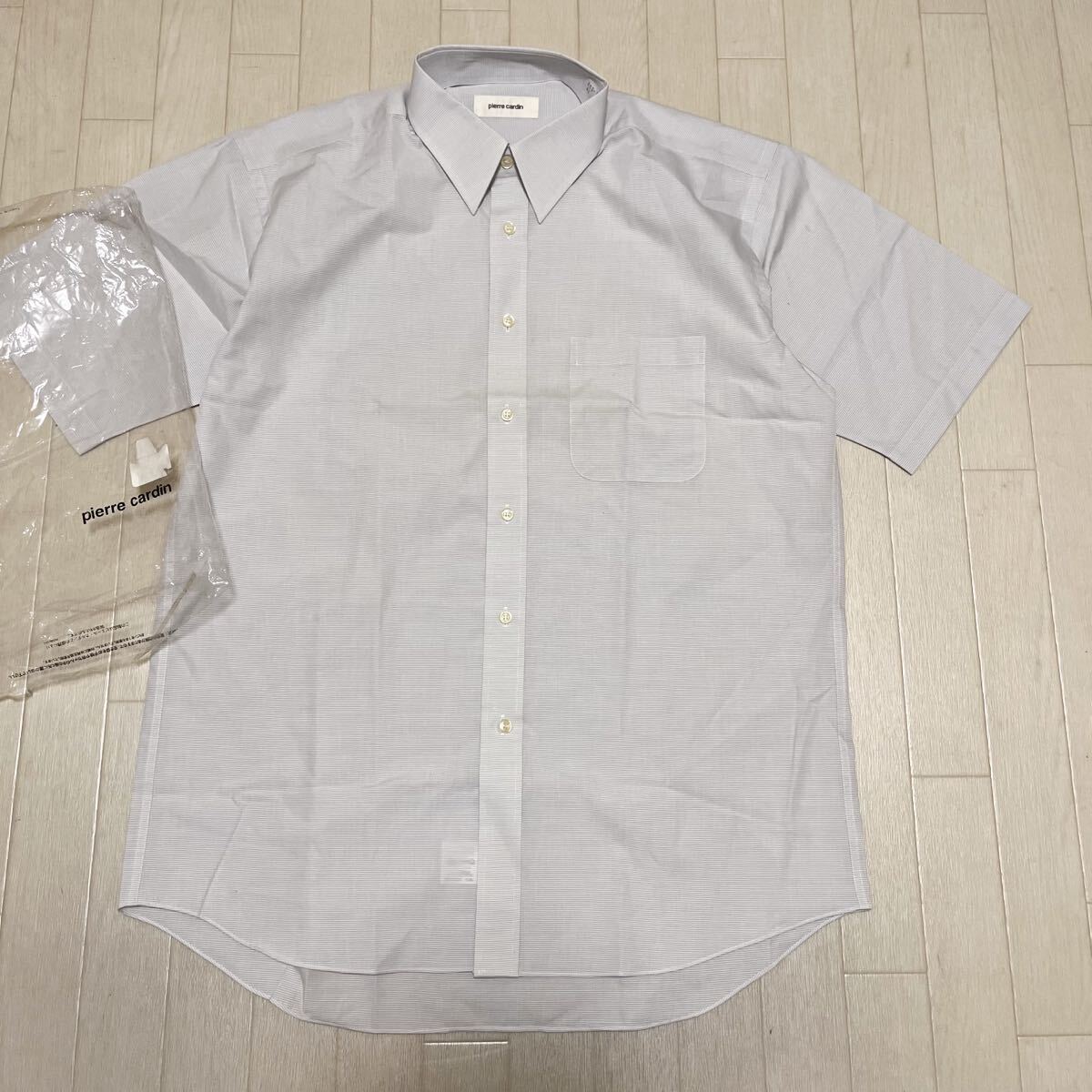 和742★① pierre cardin ピエールカルダン 半袖 ワイシャツ Yシャツ ボタンシャツ ボーダー 胸ポケット 42 ブルー メンズ