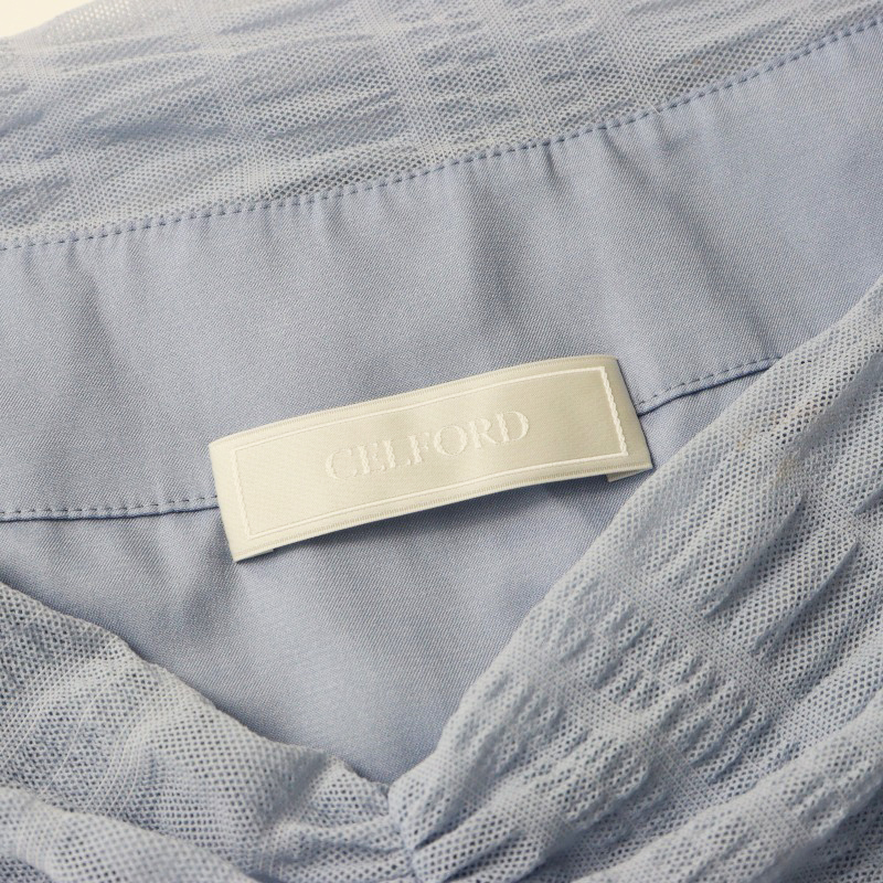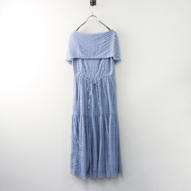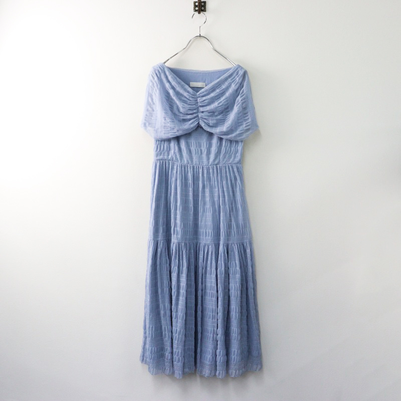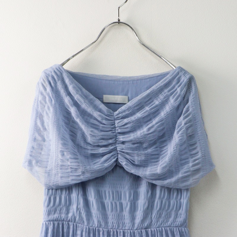 2024SS 定価3.1万 セルフォード CELFORD シャーリングチュールドレス 36/サックスブルー ワンピース レース ギャザー 【2400014428438】