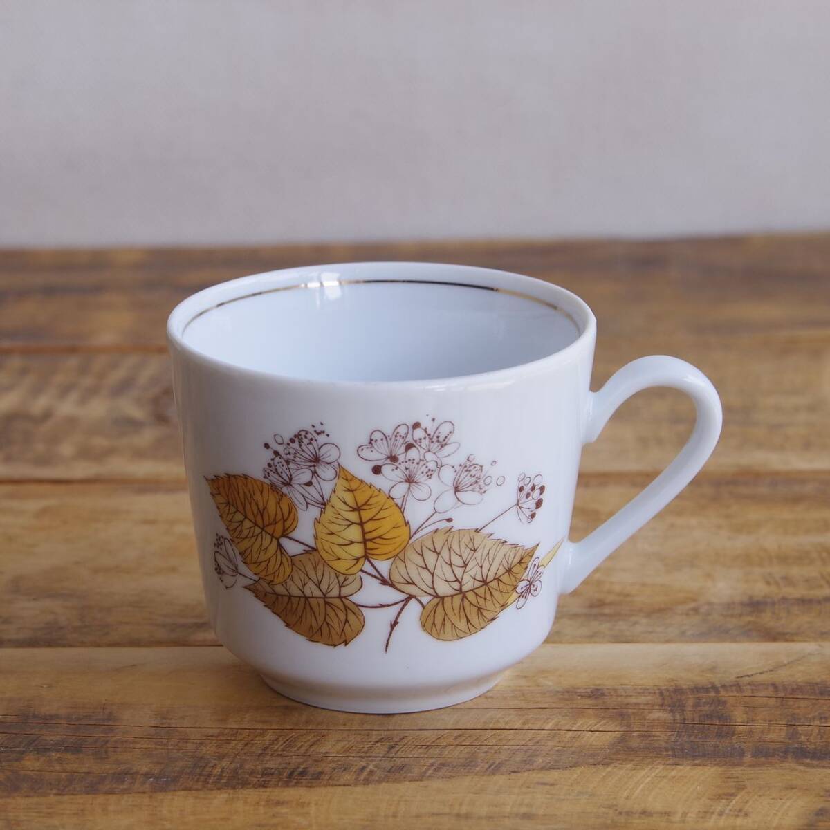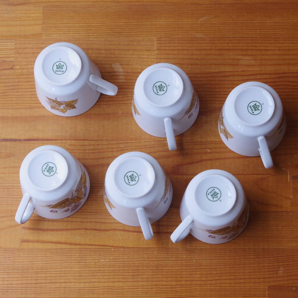 東ドイツ KAHLA カーラ ブラウン リーフ柄 花柄 コーヒーカップ (ソーサーなし) #250520-1~6 レトロ ヴィンテージ食器 陶器 ティーカップ