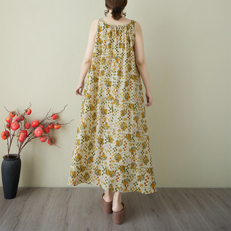 夏新入荷~大きいサイズ ノースリーブ マキシ丈ワンピース オシャレロングワンピース レディース 花柄ワンピース プリント柄ワンピース~G