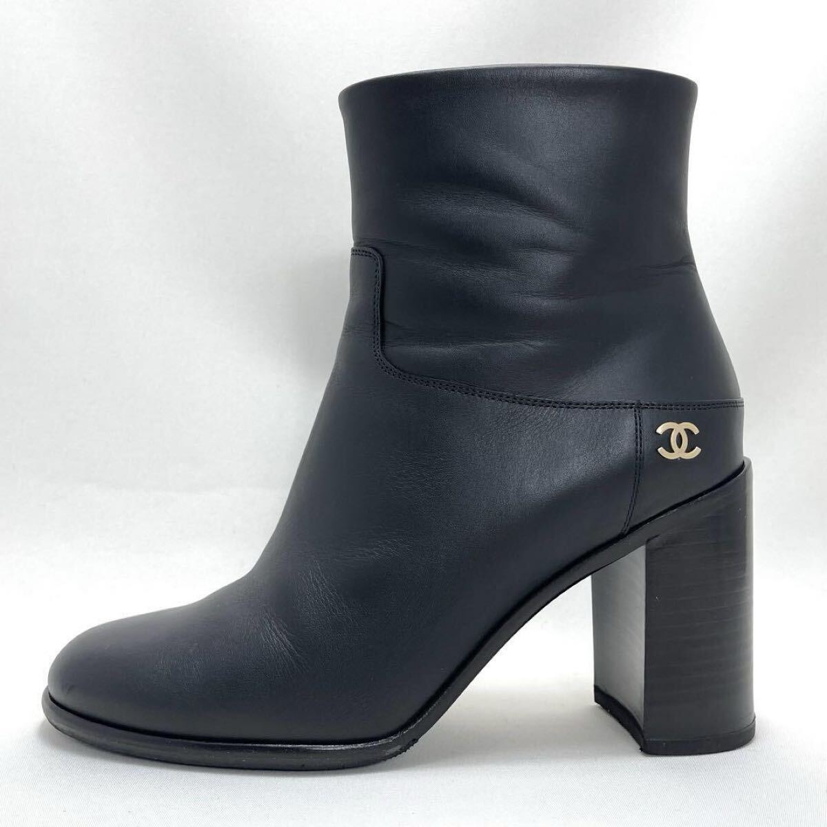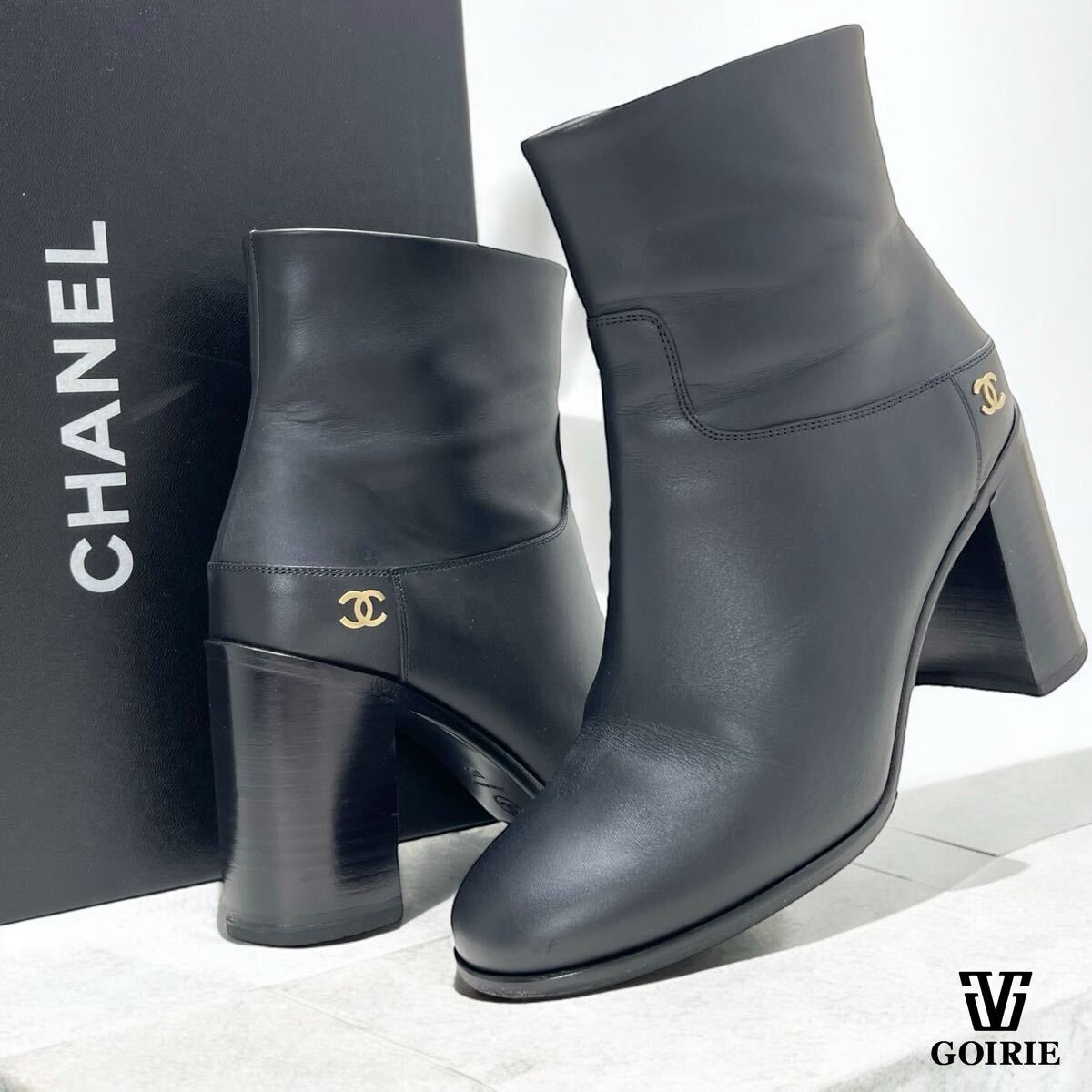 【未使用級/箱袋付】CHANEL シャネル ショートブーツ ココマーク ファスナー式 サイズ37 23.5㎝ 黒 カーフスキン ゴールド金具 イタリア製 | |||