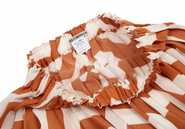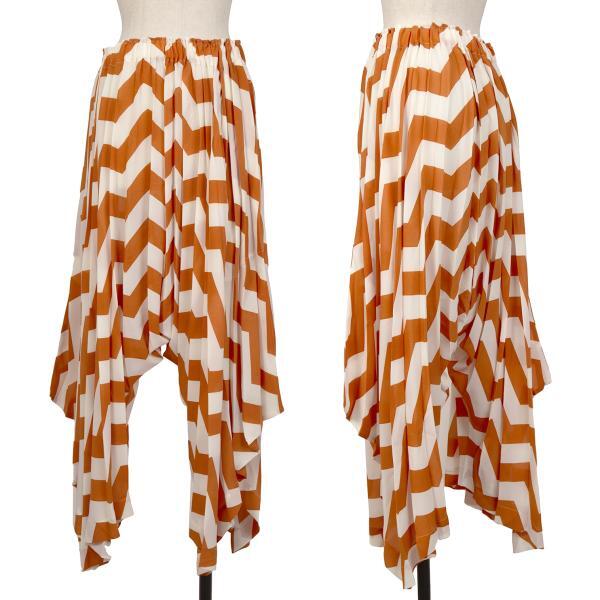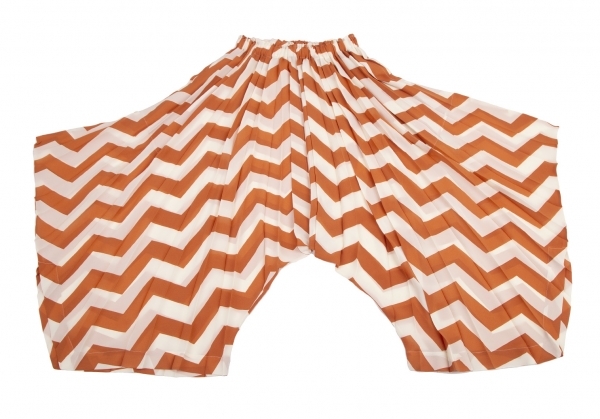 | イッセイミヤケISSEY MIYAKE ジグザグボーダーパラソルプリーツサルエルパンツ 白ブラウン3 |