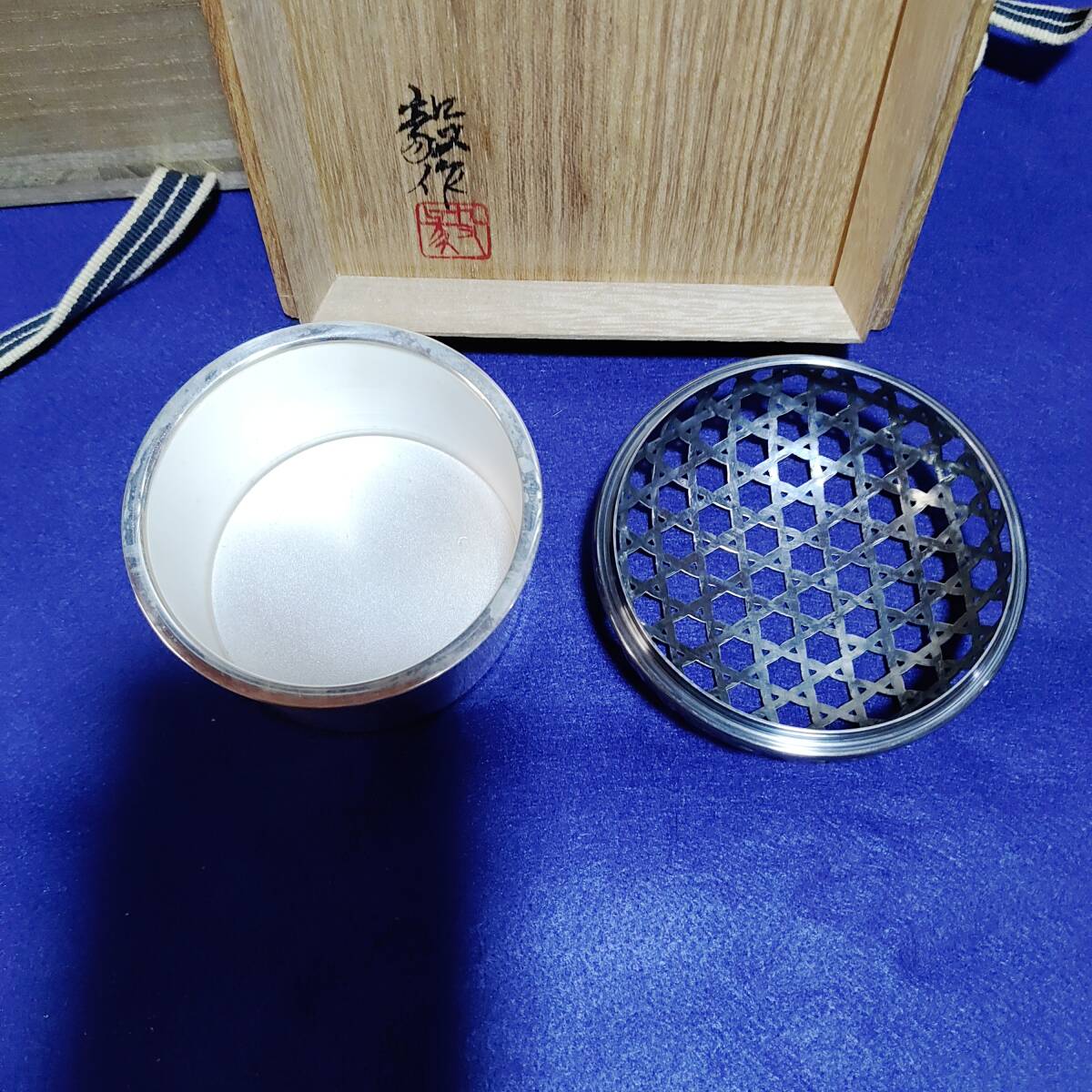 (鳥羽庵)完全売り切り細川穀作純銀火屋純銀おとし純銀重量129グラム 火鉢型香炉共箱付かえで材質木製部分欅材 商品サイズ 横幅最大11,2センチ高さ10センチ 商品状態説明日展作家細川穀作純銀火屋純銀おとし純銀重量129グラム 火鉢型香炉共箱付とても良い風合いです。 未使用保管品状態香炉です。 詳しくは写真参照でお願いします。下にフォトアップ写真ついてますので参照お願いします。 発送はゆうパックにて発送致します。 落札後ヤフーシステム期間内すべて取り引きお願いします。
