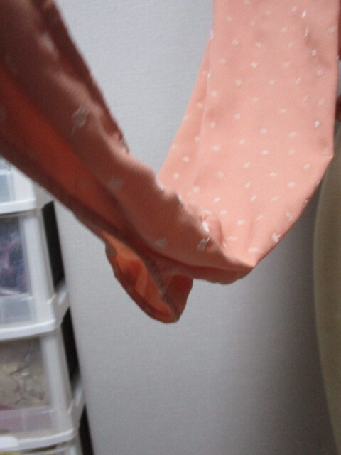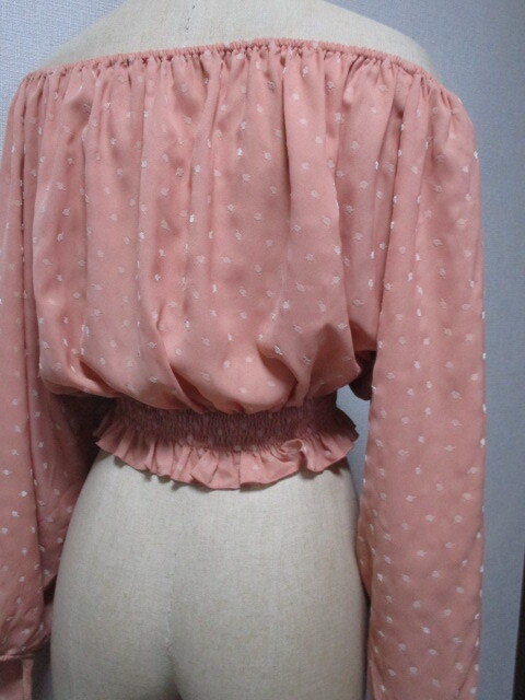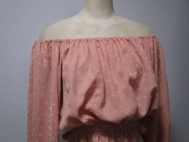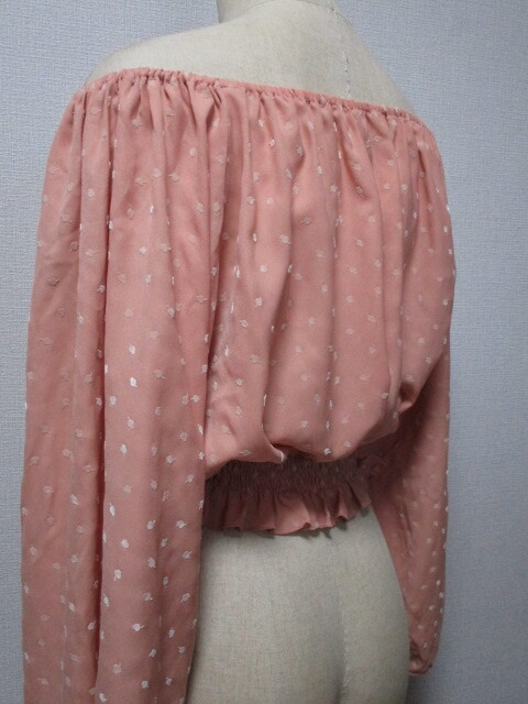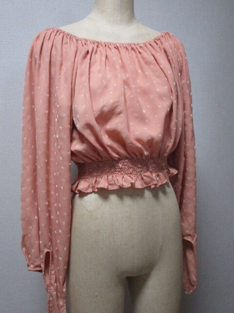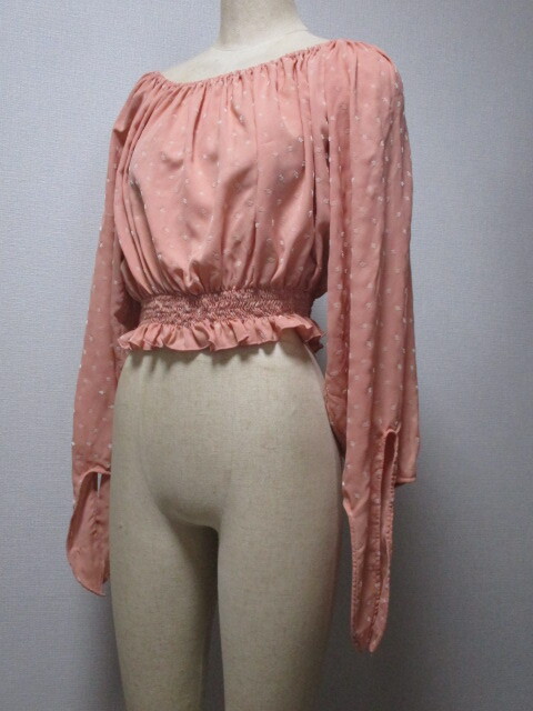Lily Brown サーモンにフロッキィドット柄★お袖ふんわり~カットソー