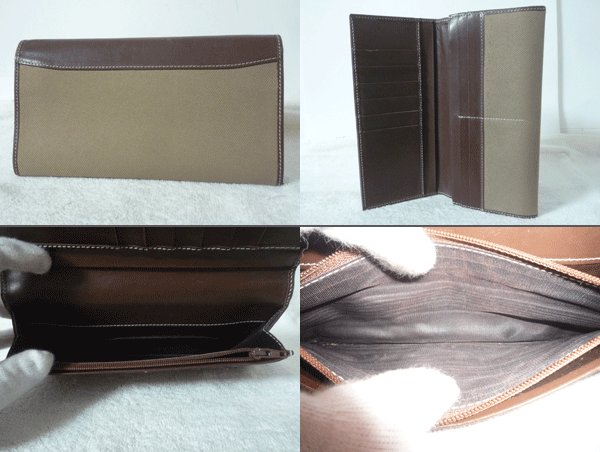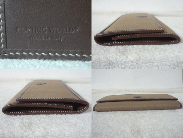ハンティングワールド HUNTING WORLD キャンバス レザー カーキ系 ダークブラウン 長財布 ロングウォレット レディース | ||