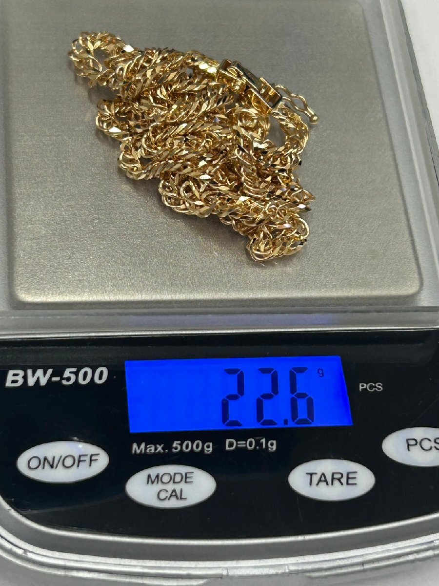 | ※こちらは一般のお客様から買取をした中古商品です。 【状態】 特に目立つダメージは見受けられず綺麗な状態です。 (※掲載写真をご参考下さいませ。) 【サイズ】 総重量:約22.6g ネックレス長さ:約55cm ネックレス幅:約3.81mm 造幣局検定マーク刻印入 ※こちらの商品は銀行振込・コンビニ決済には対応していません。 銀行振込・コンビニ決済でのご注文の場合はキャンセルになります。ご了承下さいませ。 | |||||||