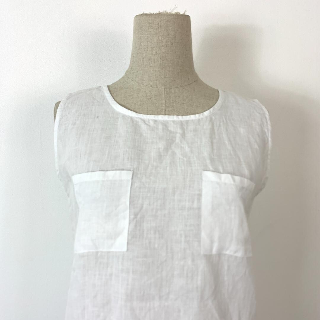 リヴドロワ ノースリーブカットソーRIVE DROITE ホワイト 白リネン100% 38 C2946