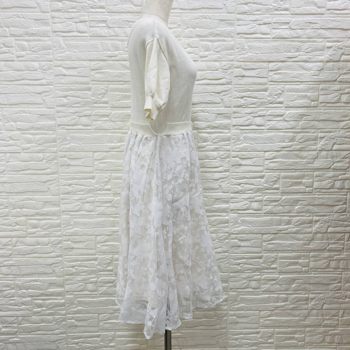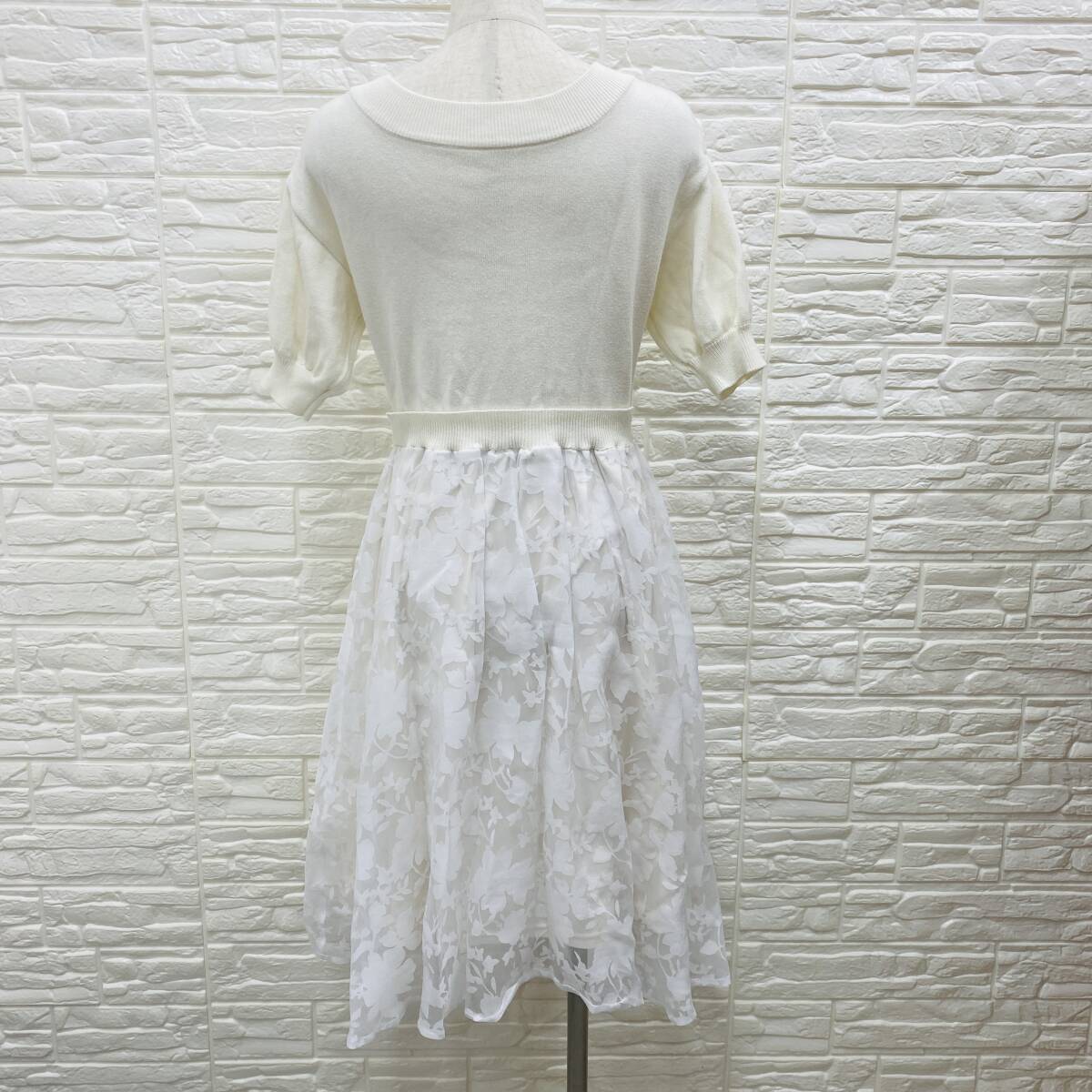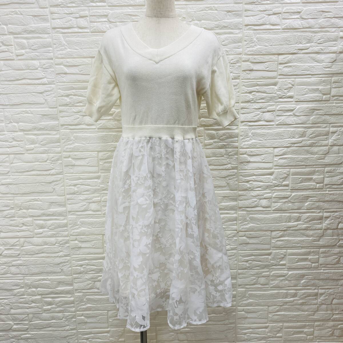 【541】AG aquagirl アクアガール ワンピース半袖 ホワイト ニット×レース 上身ニット シア-ドスカート サイズS