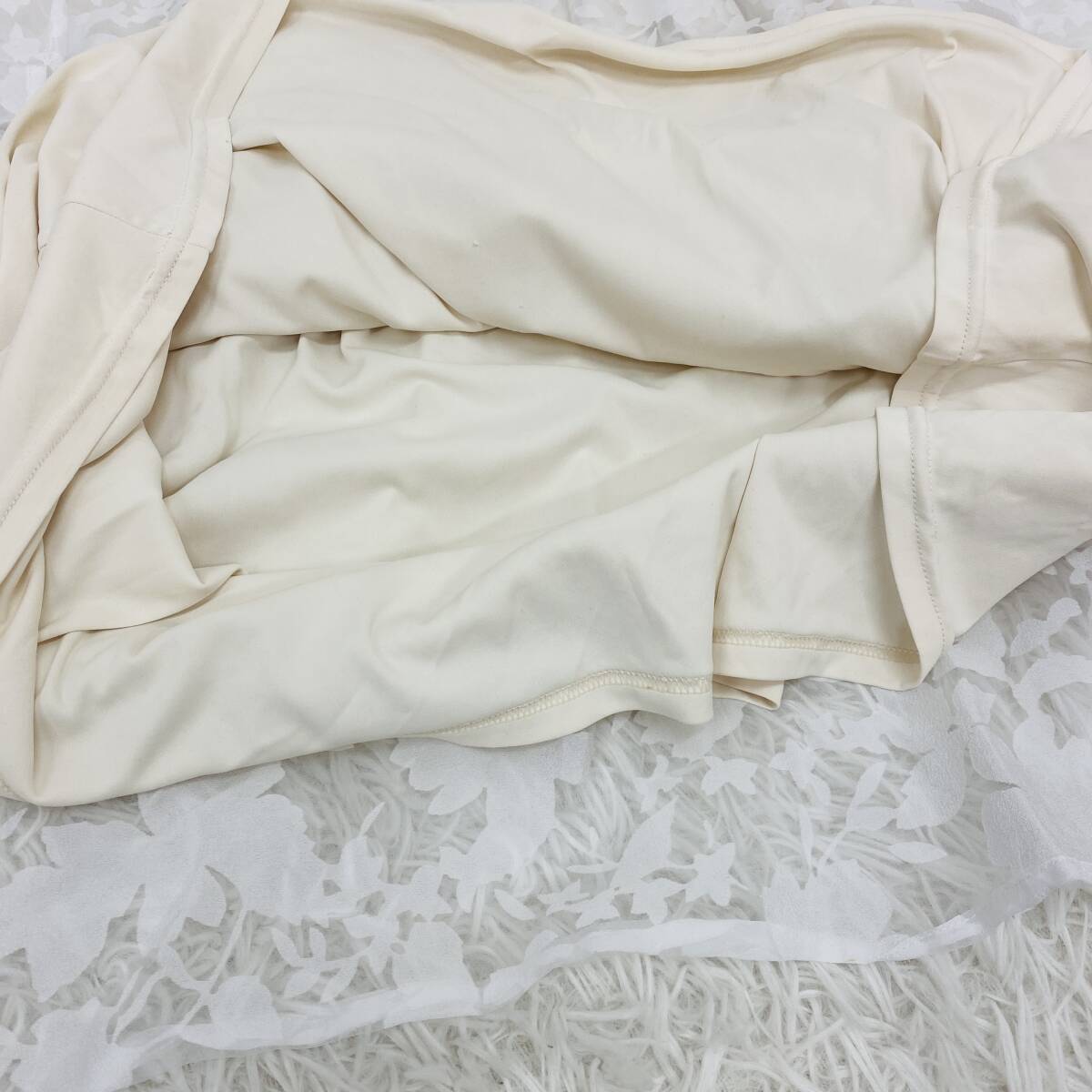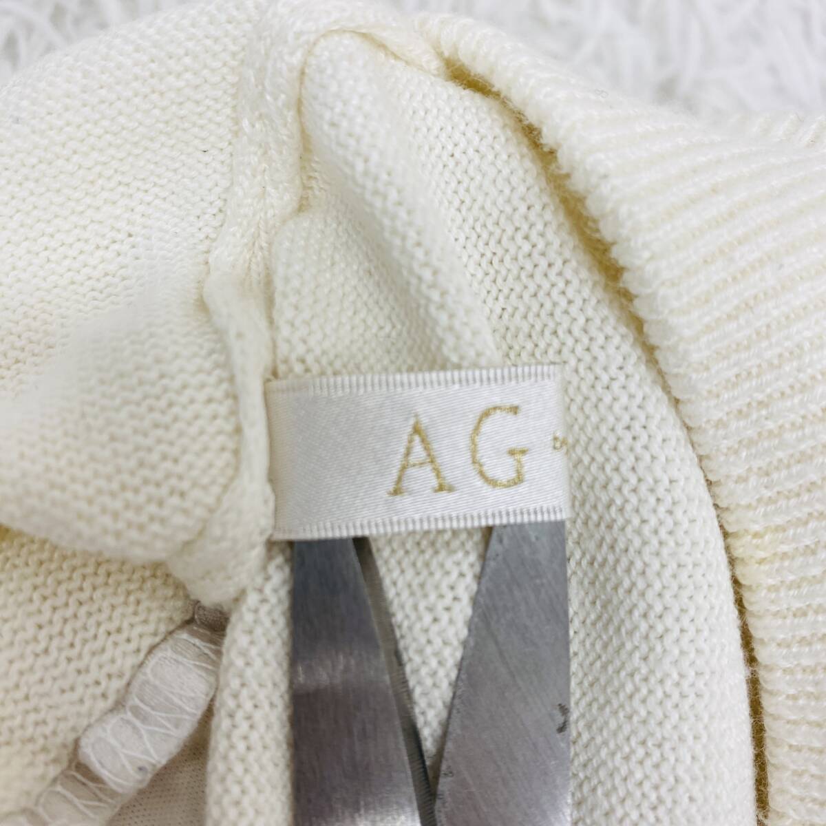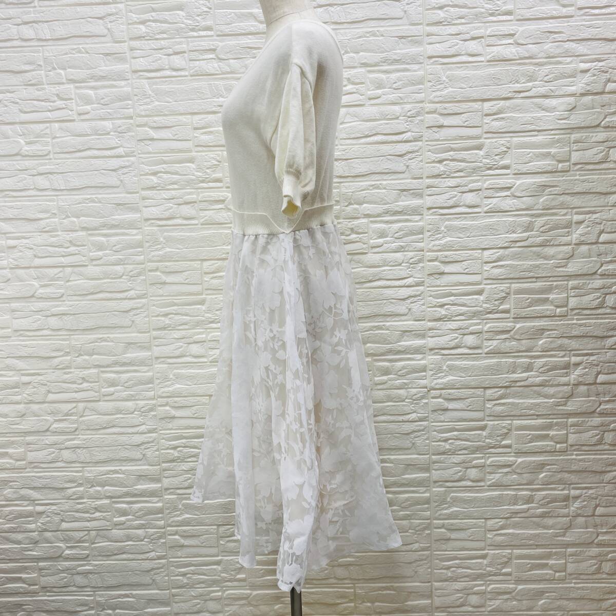 【541】AG aquagirl アクアガール ワンピース半袖 ホワイト ニット×レース 上身ニット シア-ドスカート サイズS