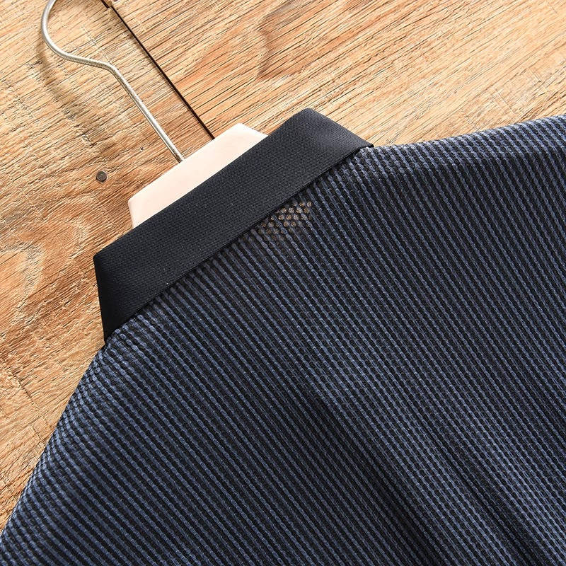 W0782-Lカーキ 新品 シアサッカー 半袖 ポロシャツ メンズ ストライプ 吸汗速乾 通気 薄手 細身 夏 ビジネス カジュアル ゴルフ シャツ