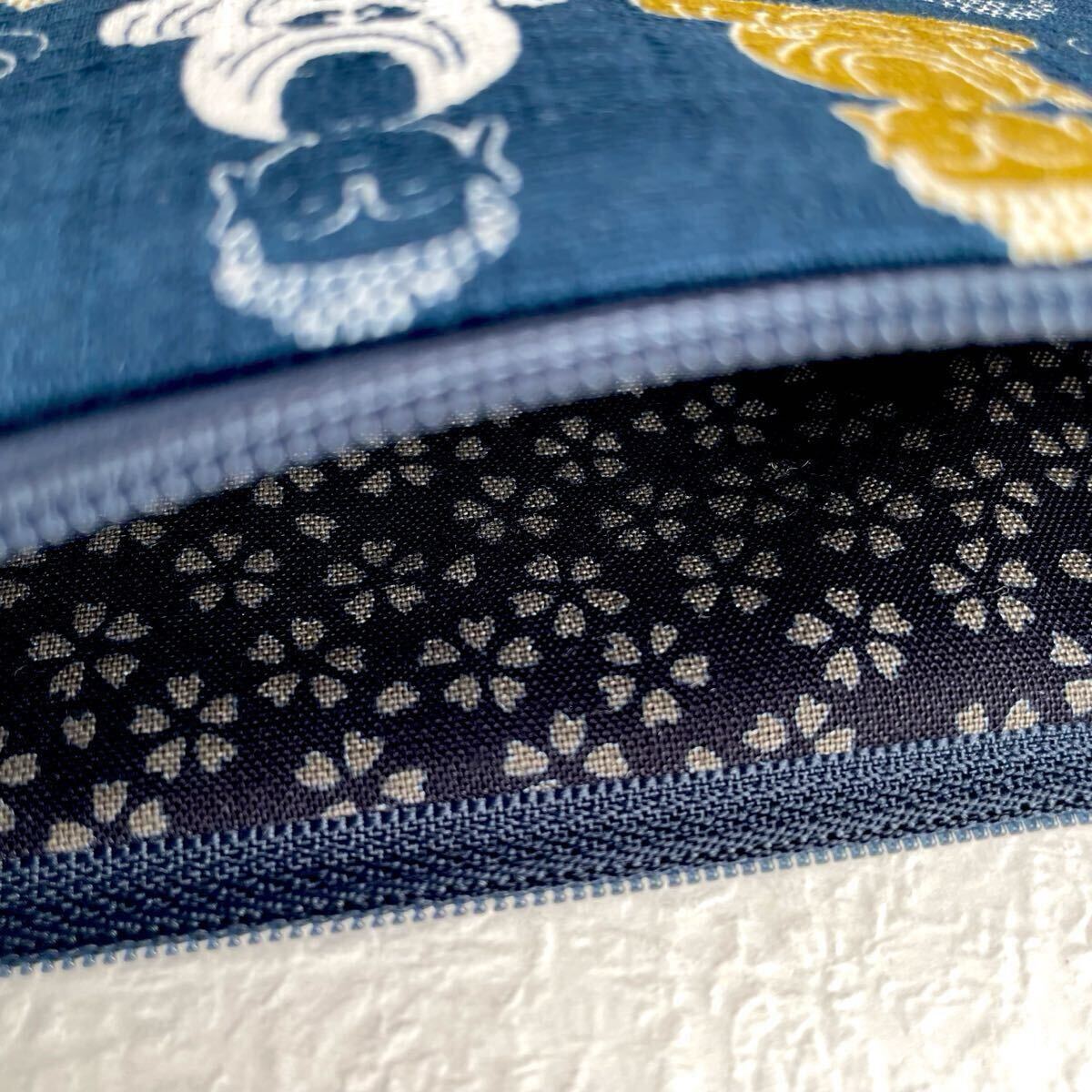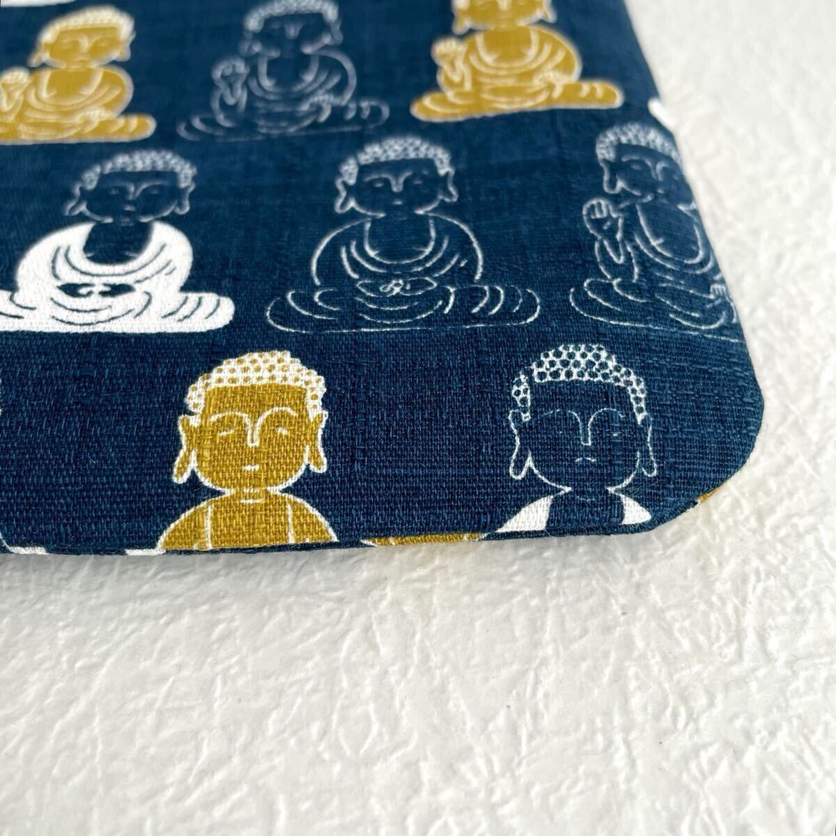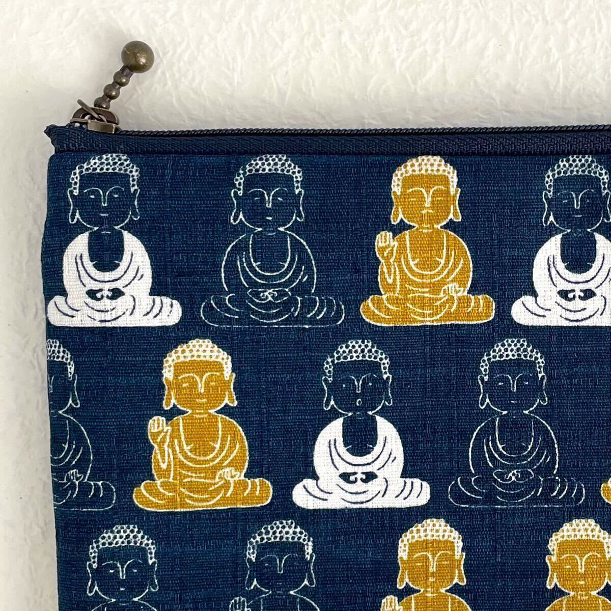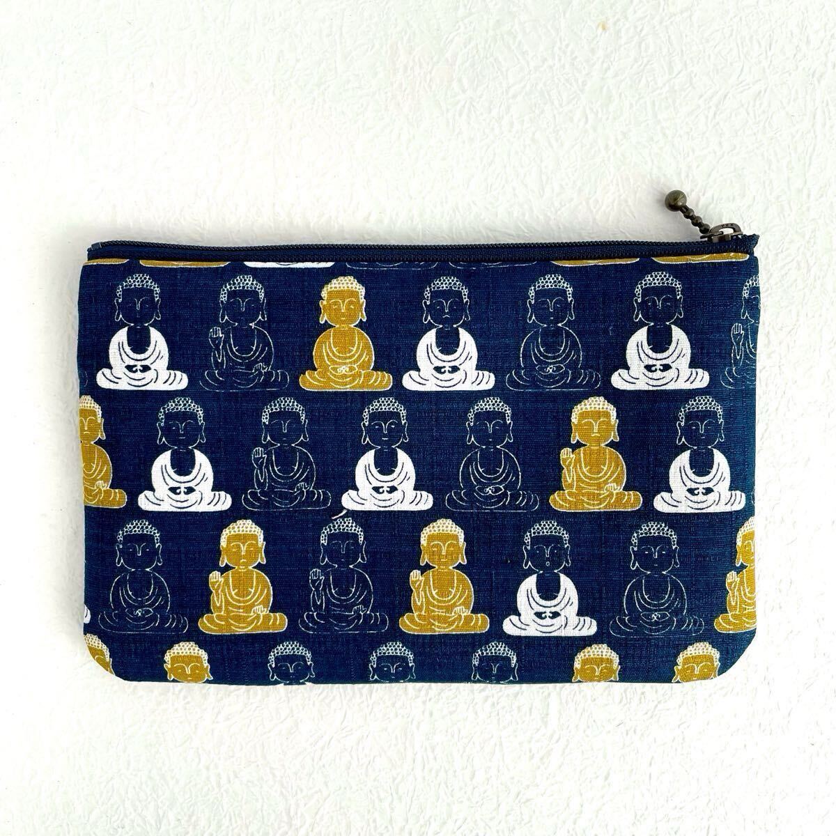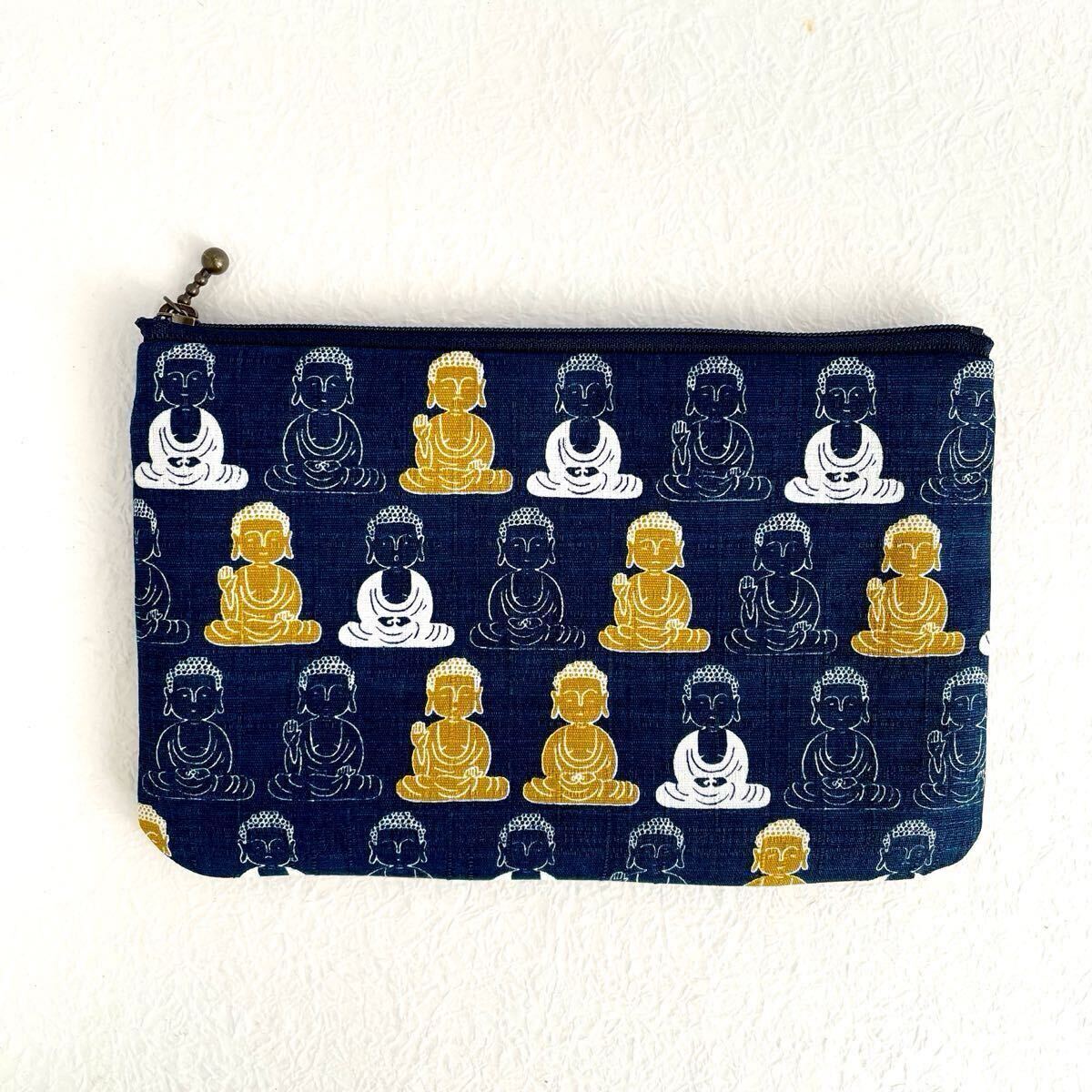 大仏様 フラットポーチ 20×13cm ハンドメイド 和柄 通帳入れ お薬手帳入れ ポーチ ペンケース 化粧ポーチ ネイビー 紺