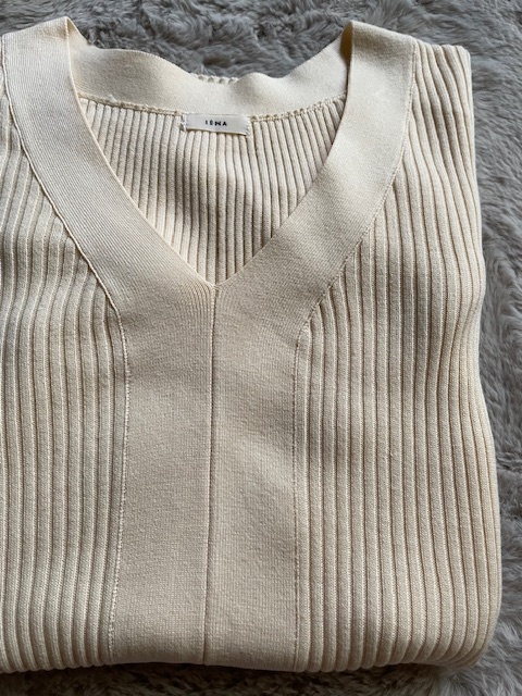 美品*IENA*イエナ*イタリアシCOリブVネックプルオーバー*ナチュラル*