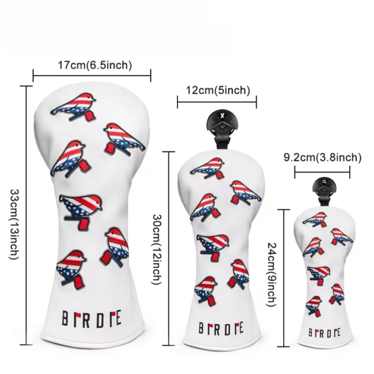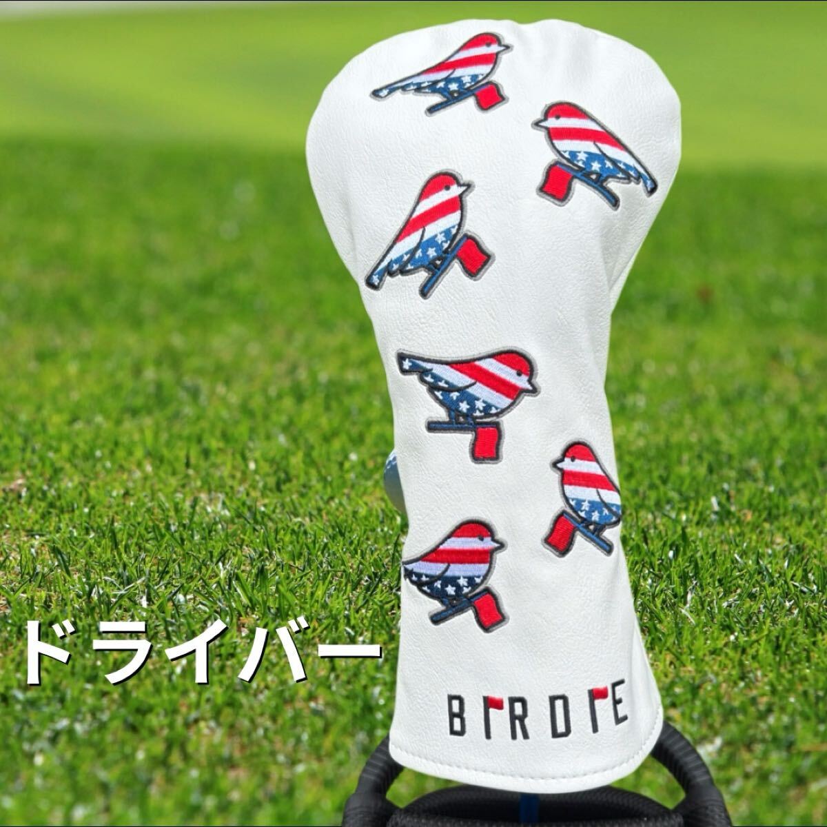 アメリカンテイストのバード柄が印象的な、BIRDIEブランドのゴルフ用ドライバーヘッドカバーです。