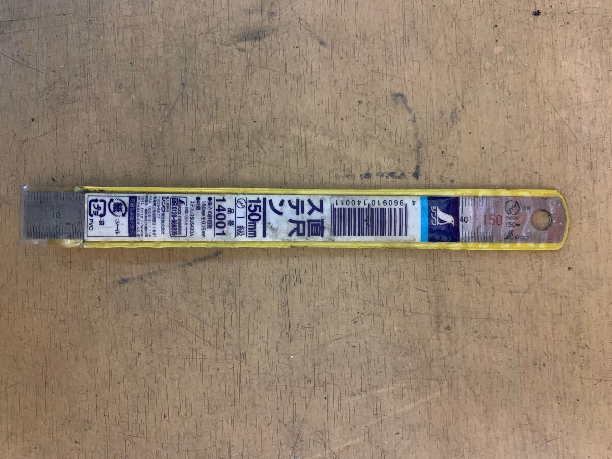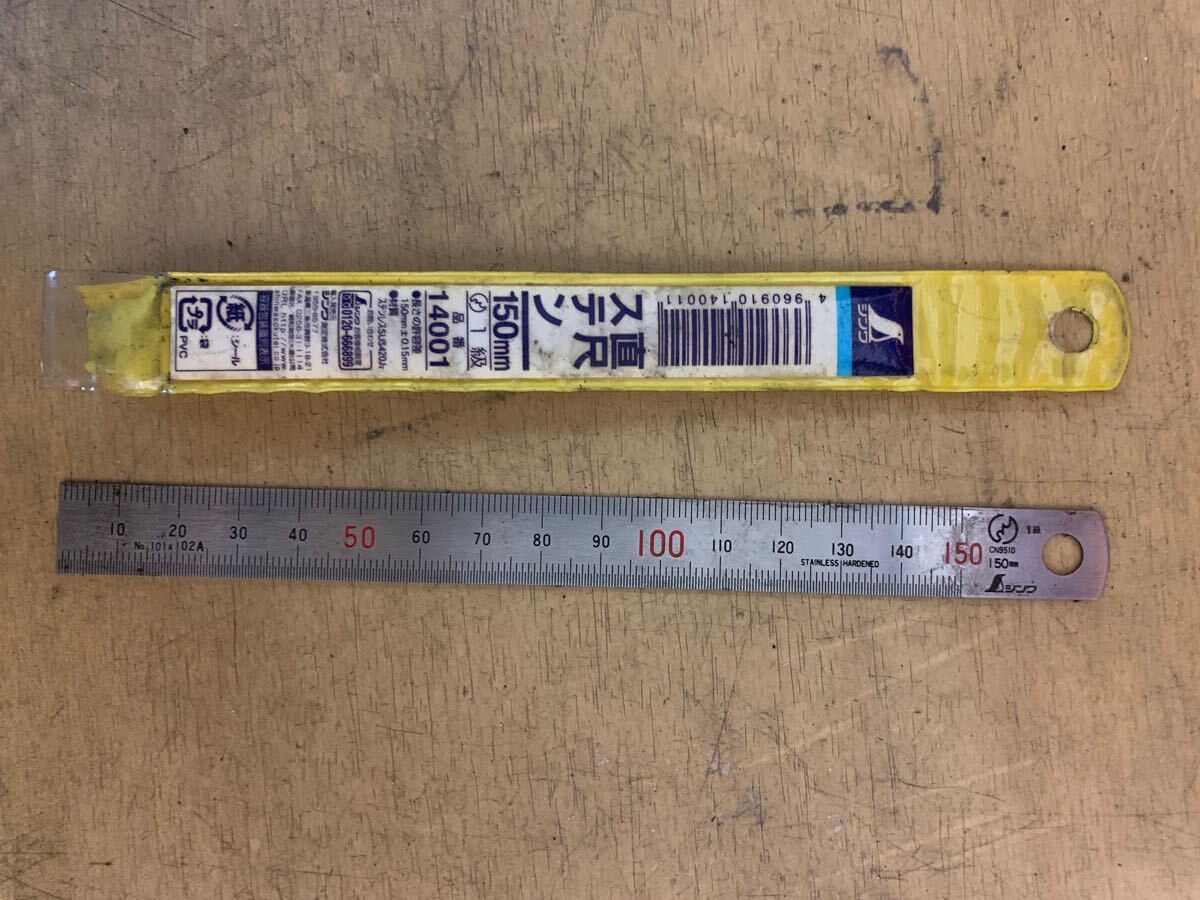 150mmの金属製イエロースケール、メートル法対応の測定工具。
