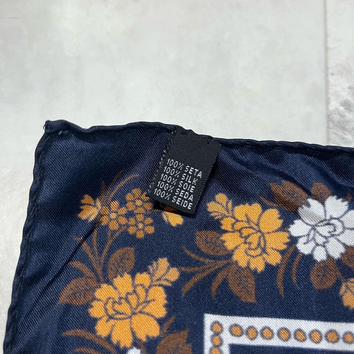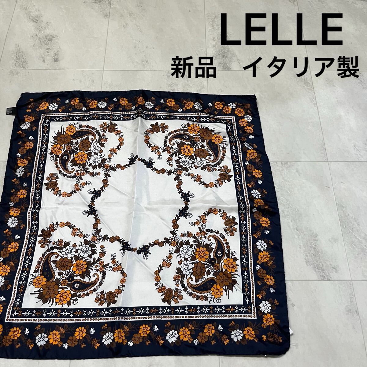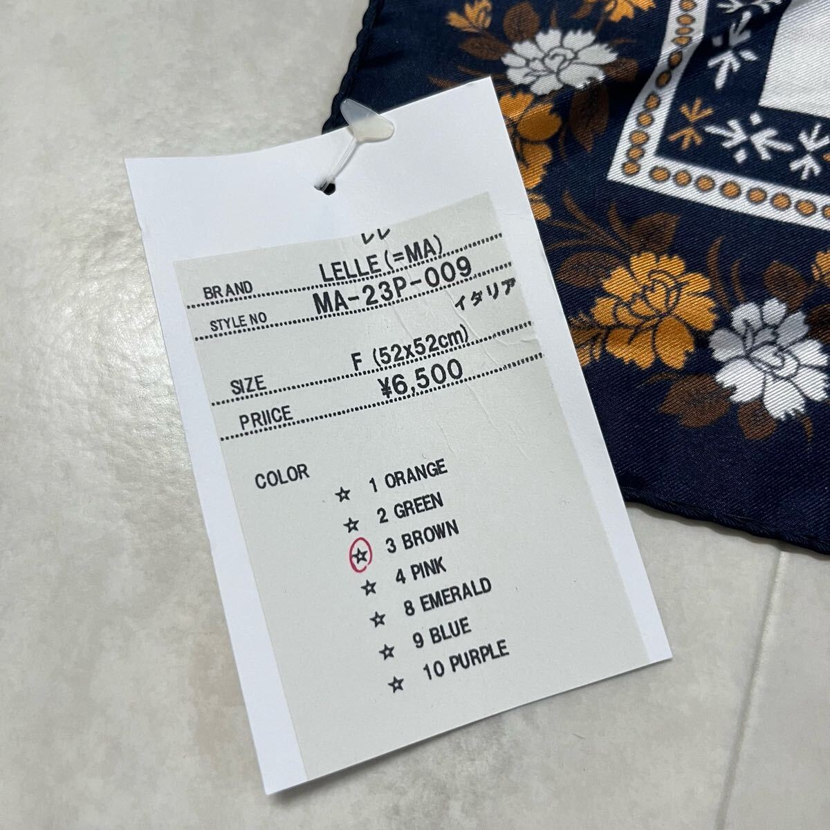 新品 イタリア製 LELLE レレ バンダナ ハンカチ スカーフ シルク100% 高級 花柄 EU ヨーロッパ ブラウン ネイビー 玉mc3756