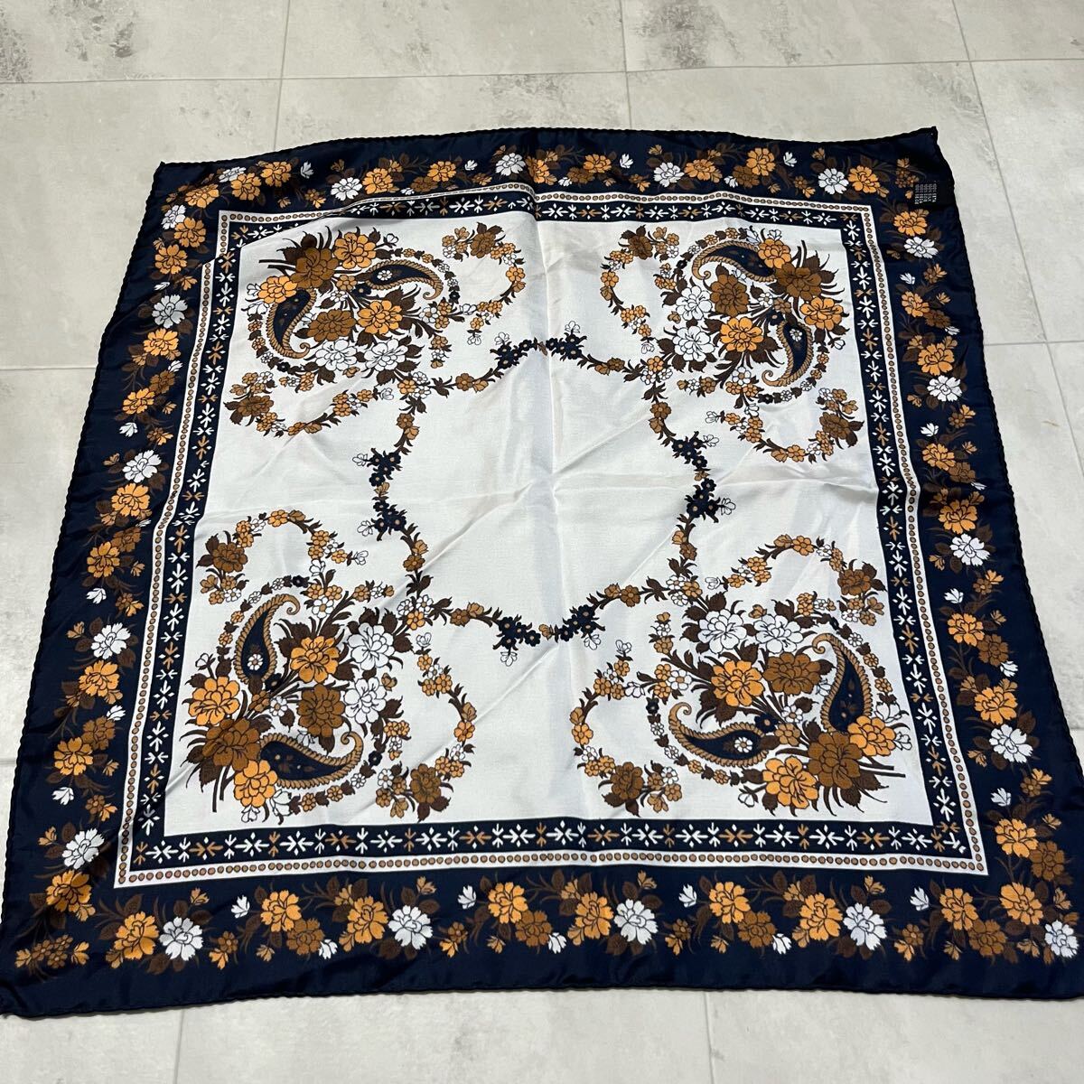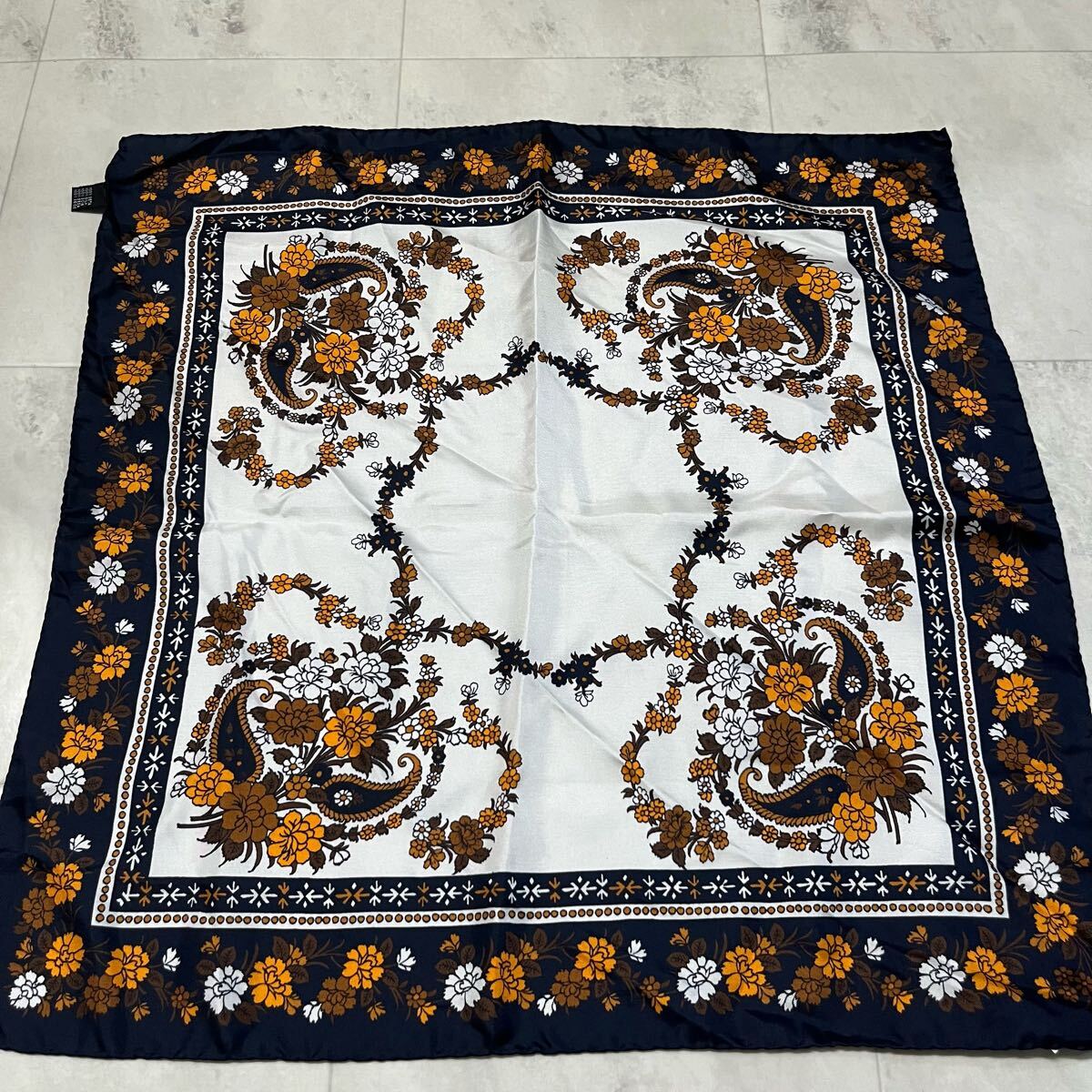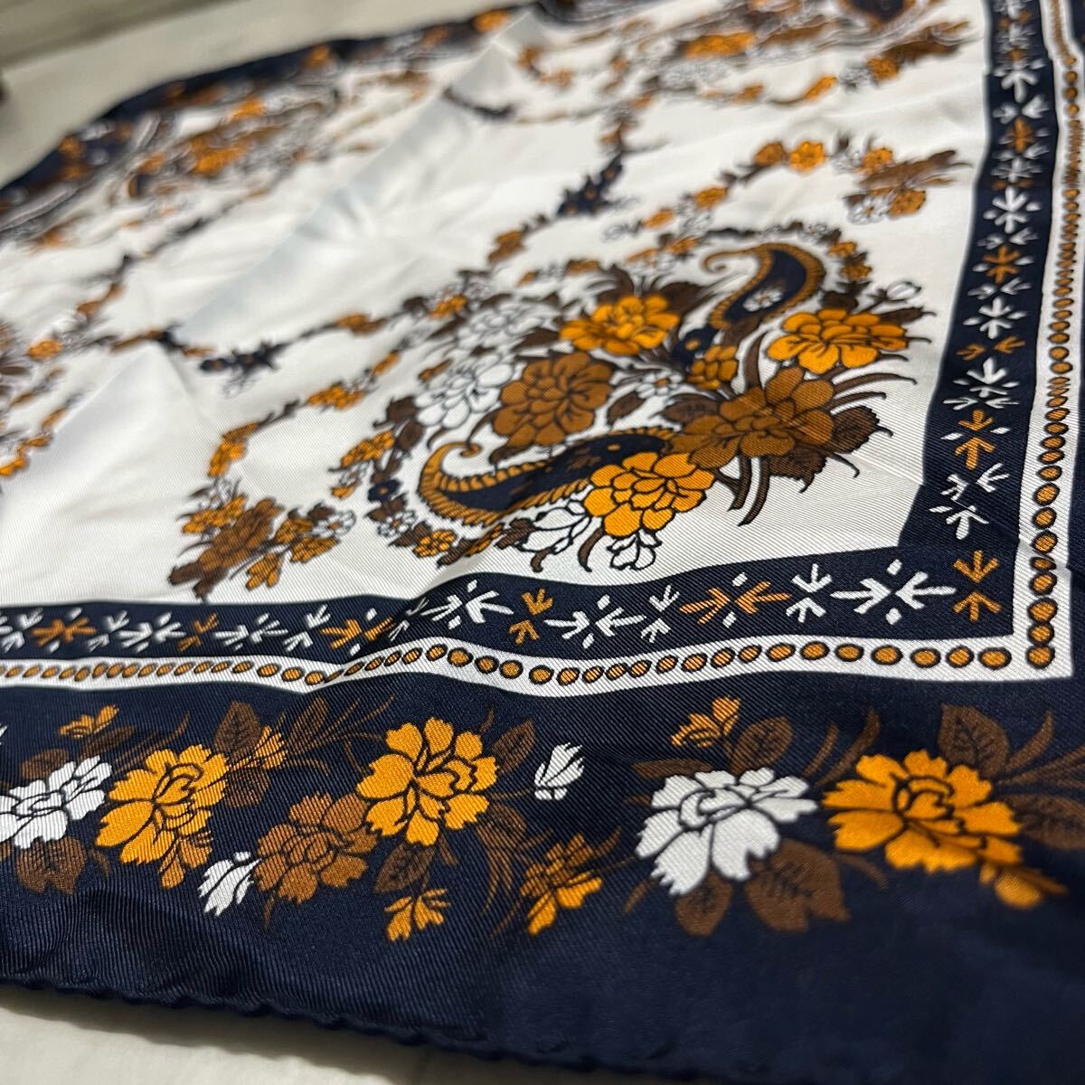 新品 イタリア製 LELLE レレ バンダナ ハンカチ スカーフ シルク100% 高級 花柄 EU ヨーロッパ ブラウン ネイビー 玉mc3756