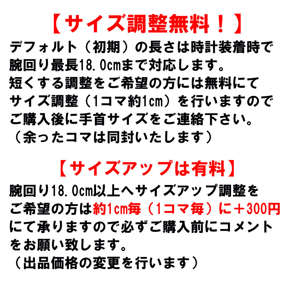 短くする調整をご希望の方には無料にてサイズ調整(1コマ約1cm)を行いますので、ご購入後に手首サイズをご連絡下さい。(余ったコマは同封いたします)