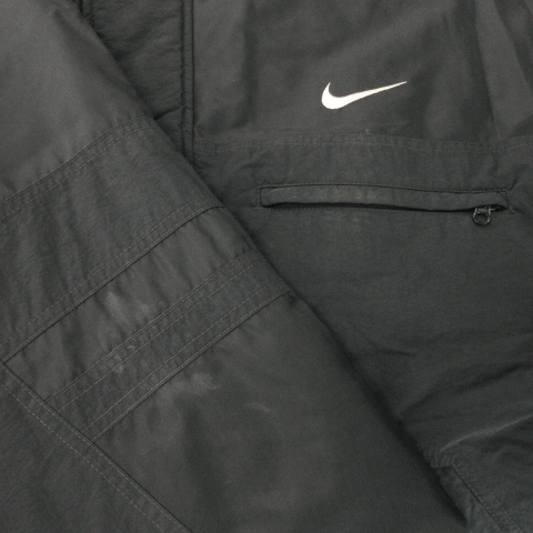 ナイキ NIKE ヴィンテージ 90's 中綿ジャケット ジップアップ スタンドカラー ナイロン ロゴ 刺繍 XL 黒 ブラック H60409PAS