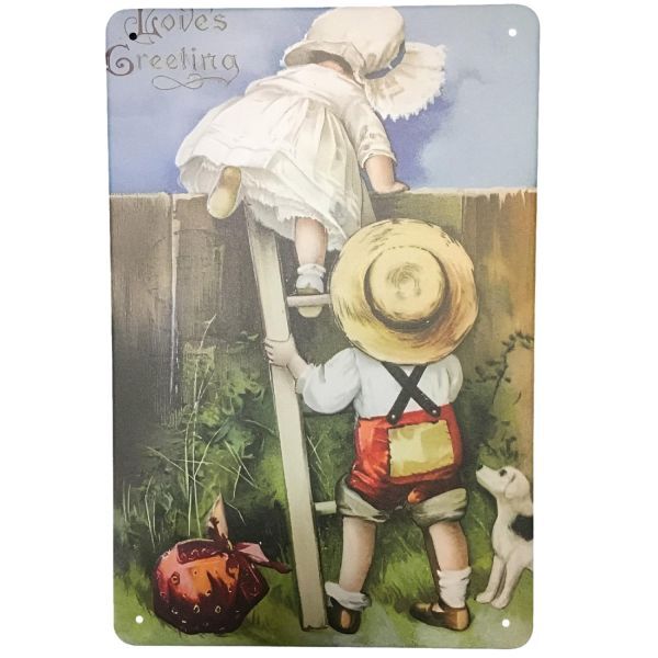ガーデニング 雑貨 プランター プレート ブリキ 看板 パネル アンティーク インテリア 壁掛け (子供達)