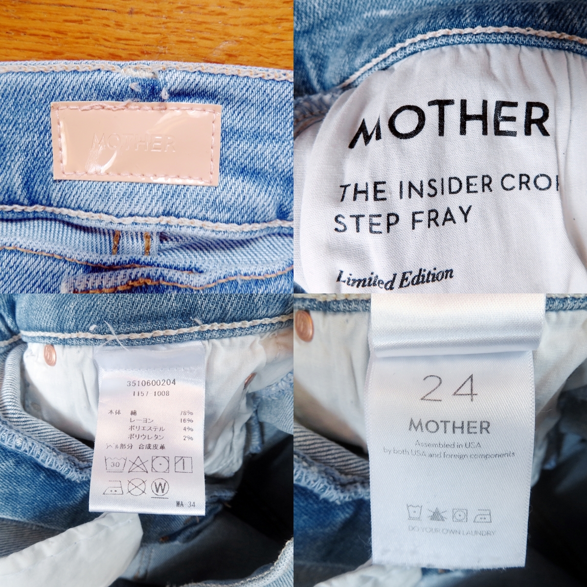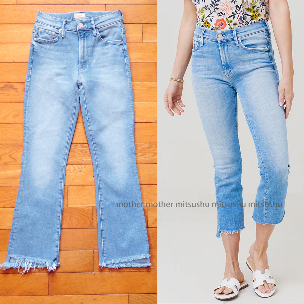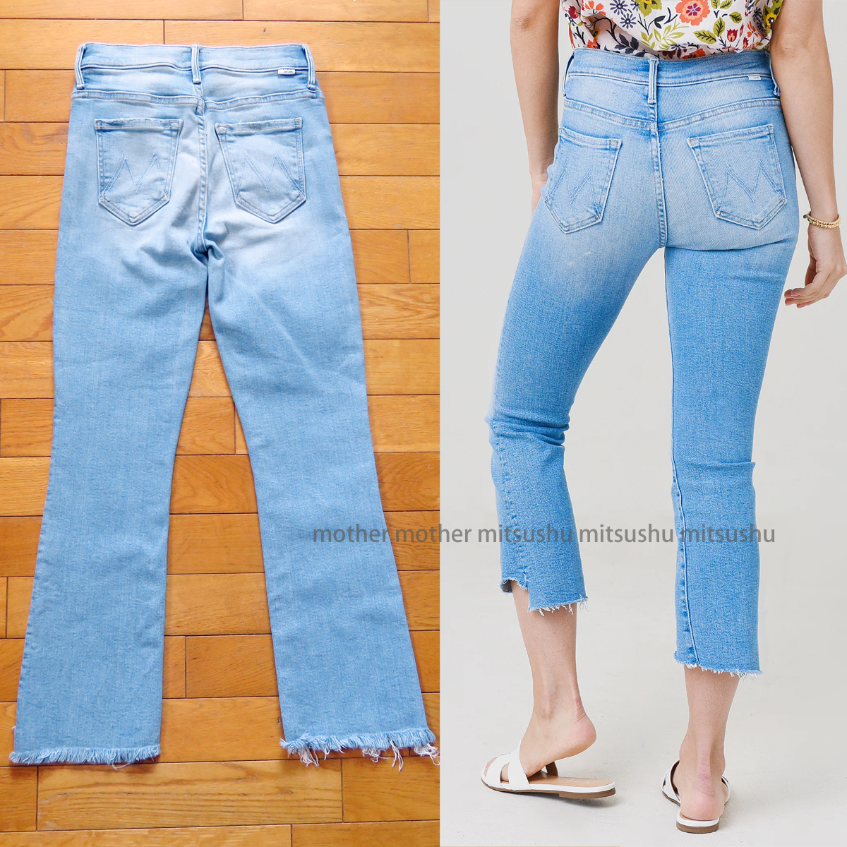 裾の前後で、カットオフの長さが違うとっても可愛いデニムです。海外のセレブにも人気があり、 STORYやclassyなどファッション誌でもかなり取り上げられている、人気のモデルです。 2022年の「LIMITED EDITION(限定モデル)」で、2023年に購入した新しいモデルです。 ハイライズのウエスト、クロップド、適度に裾もフレアになっていて、すごくきれいなシルエットになっています。 とっても鮮やかな色合いで、色落ちしたような感じ(あたり感)や、 ポケット部などのダメージは、リアルなヴィンテージ加工で、雰囲気抜群のデニムになっています。 また、このデニムの特徴、生地の感じが肌さわりもとっても良くて、ストレッチもあり、 肌に吸い付くような履き心地は、とっても快適な柔らかさです(*^ ^*) お色はライトブルーに近い感じの色合いです。 右の写真は同型モデルの写真です。シルエットなどイメージの参考にしてください。 モデルさんはかなり背の高い方なので、レングスはもう少し下まであります。 クロップド丈、少し軽めの生地感は、とても履きやすくなっていて、コーディネートにすごく役立ちます。 おすすめです!!いかがでしょうか(^^) 【コンディション】 多少の使用感はありますが、使用回数はわずかで、大きなダメージ、目立つ汚れ等はありません。 まぁまぁきれいかと思います。十分着用していただけます。 ----------------------------------------------------------- 【表記】サイズ W24 【モデル】 insider crop Step fray 【実寸】 平置き ウエスト 31.5cm×2(63cm)(平置き後ろ直線測定) 股上 24cm 股下 65cm (内側) 裾幅 18cm もも幅 20cm (股下付け根より10cm程下を水平に計測) 前後程度になります。※平置き、素人採寸になりますので、多少の誤差はお許し下さい。 ----------------------------------------------------------- 【色】 ミッドブルー ライトブルー 【フロント】 ジッパーフライ 【生産国】 アメリカ製 【モデル】 insider crop Step fray 【素材】 コットン78% レーヨン16% ポリエステル 4% ポリウレタン2% 【USED品】 ------------------------------------------------------------- ◆ 他にもいろいろデニムなど出品していますので、よかったら見ていってください。 ◆ もちろん同梱もできますので、お気軽にご質問ください。 ◆ 気持ちの良いお取引を目指していますので、ご質問は事前にお気軽にどうぞ。 終了直前だとお答えできない場合があります。どうぞよろしくお願い致します。 |
