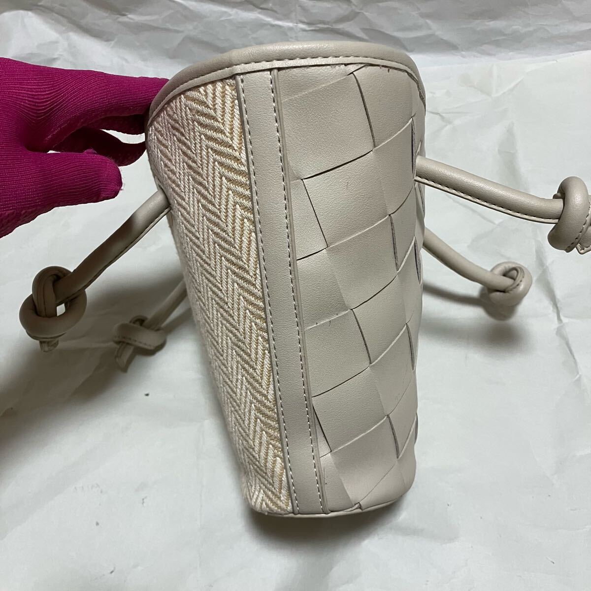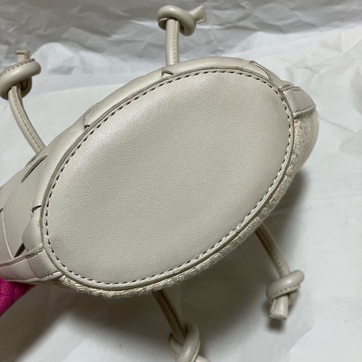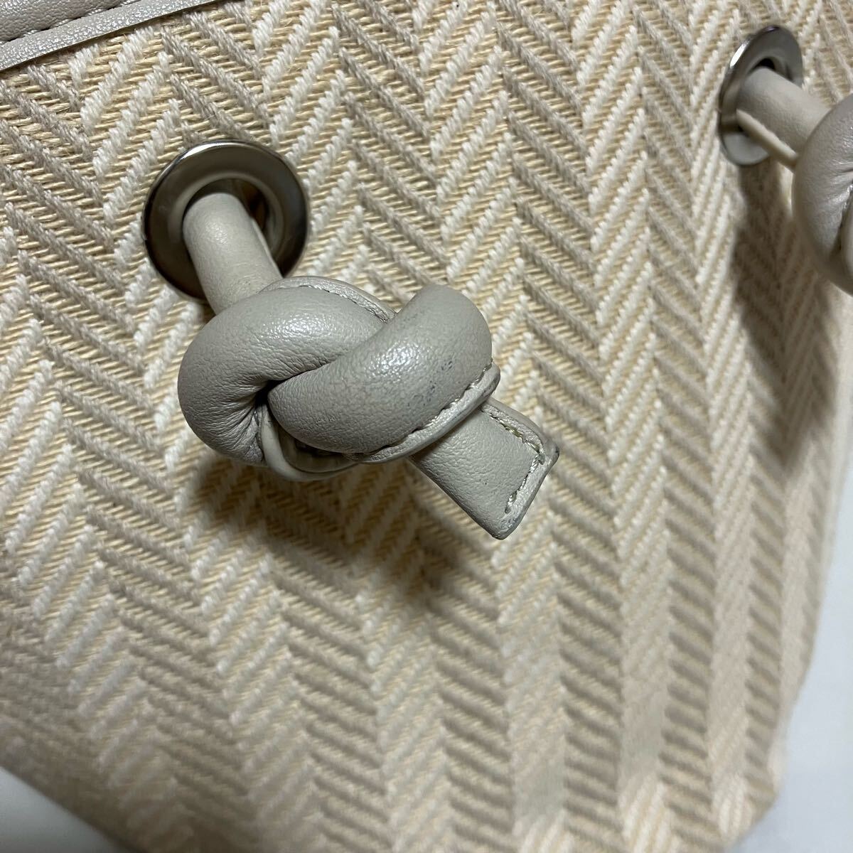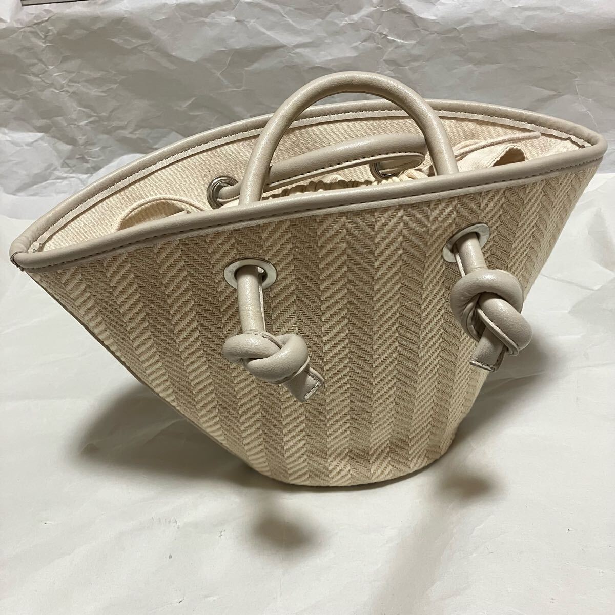 表と裏で表情が異なるコンビバッグ。ナチュラルな風合いの面と、メッシュ編み面の切り替えデザインが特徴です。デイリーに必要な小物類が入れられるサイズ感、口元は巾着仕様で中身をカバーします。