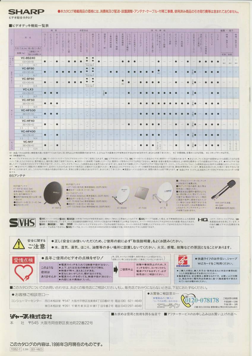 SHARP Lynx 液晶ビデオ リンクス('96-3) 総合カタログ