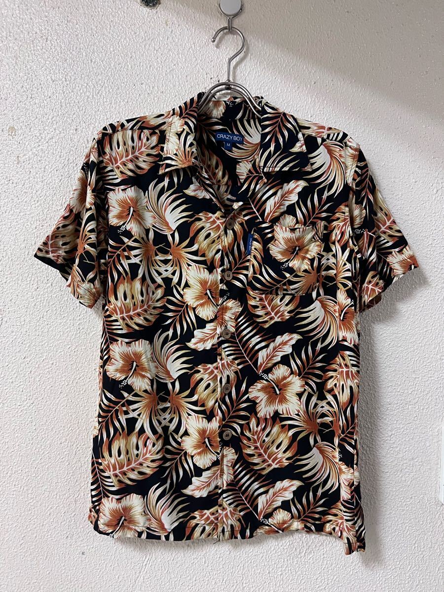 オープンカラー、胸ポケット付き、ボタンはココナツボタンです。