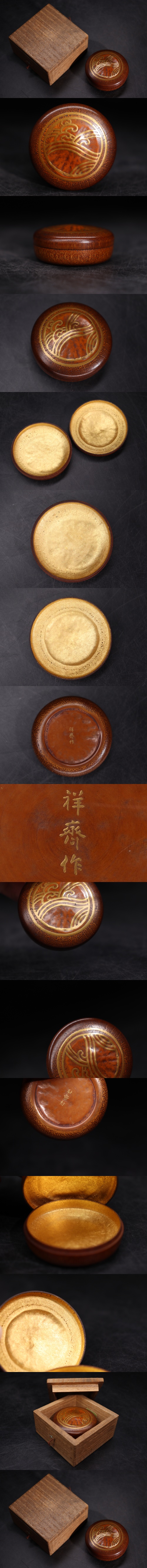 | 時代 祥斎 作 竹製 金彩 香合 木箱付 / 竹工芸 古竹 煤竹 竹根 竹細工 煤竹 香道具 煎茶道具 .G1607 |