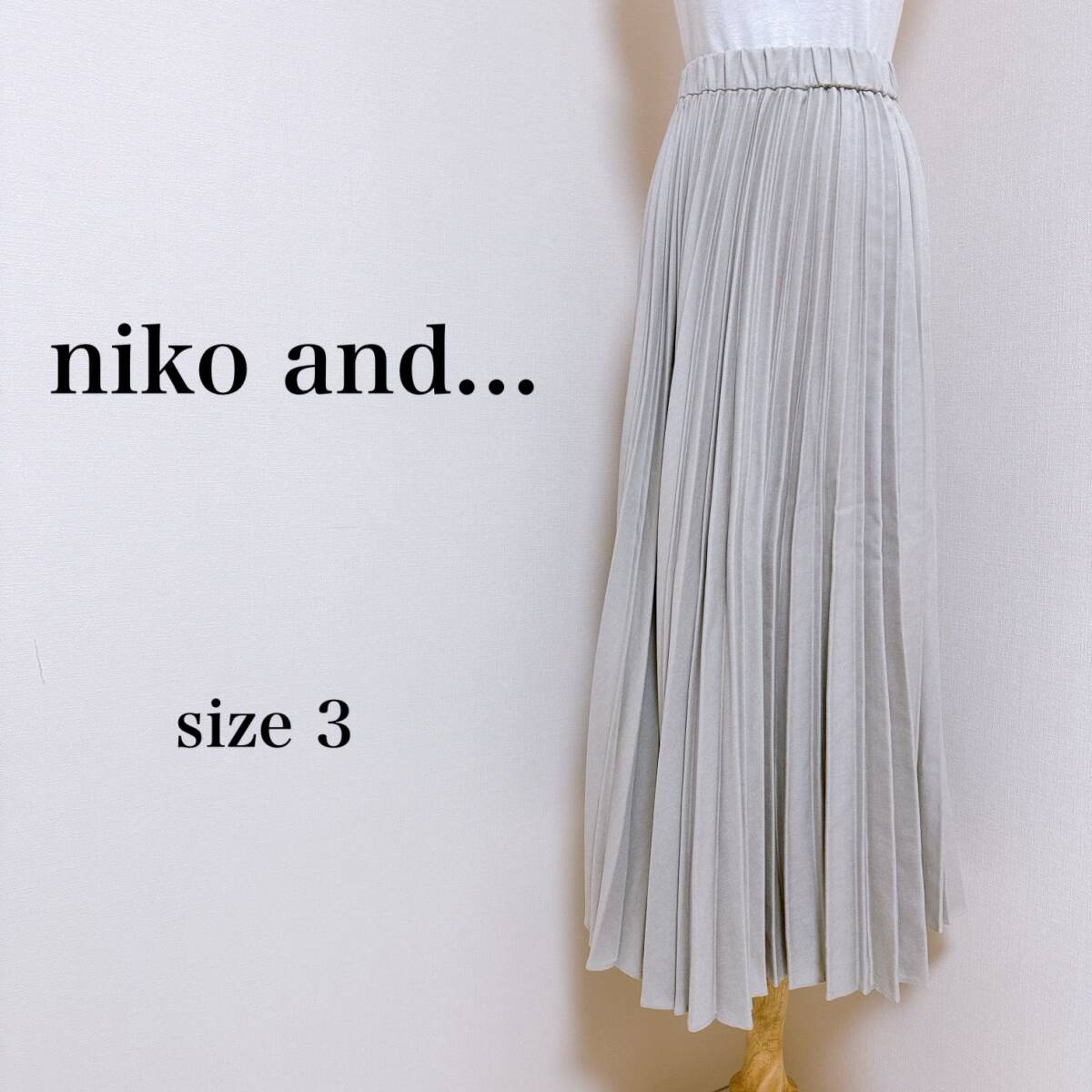 niko and ... ニコアンド ロング スカート フレア プリーツ ウエストゴム 無地 グレー 3 古着 匿名配送 レディース 【H-193】