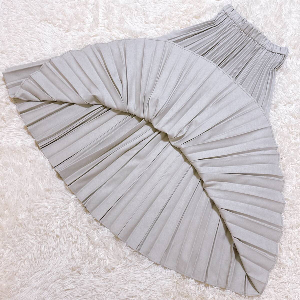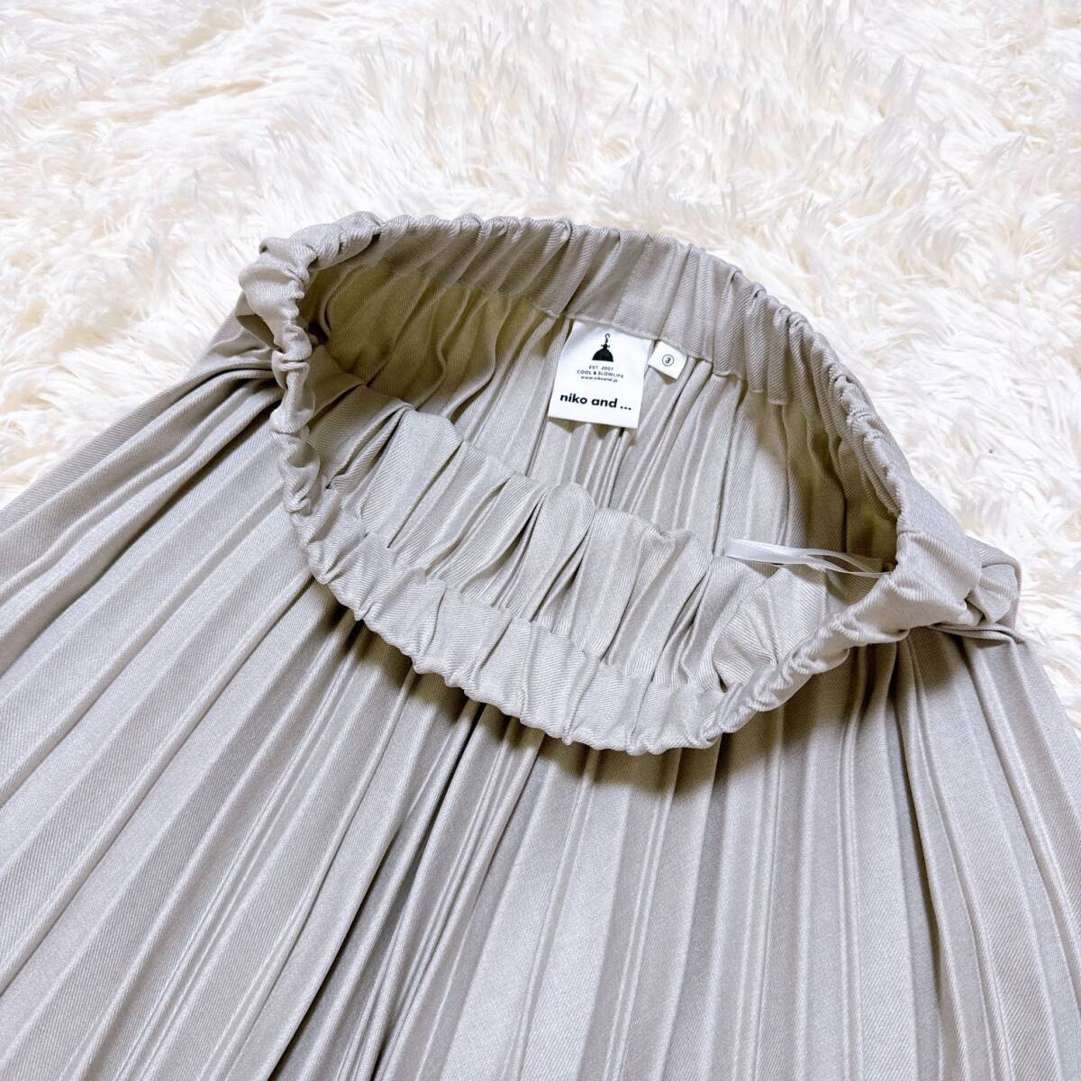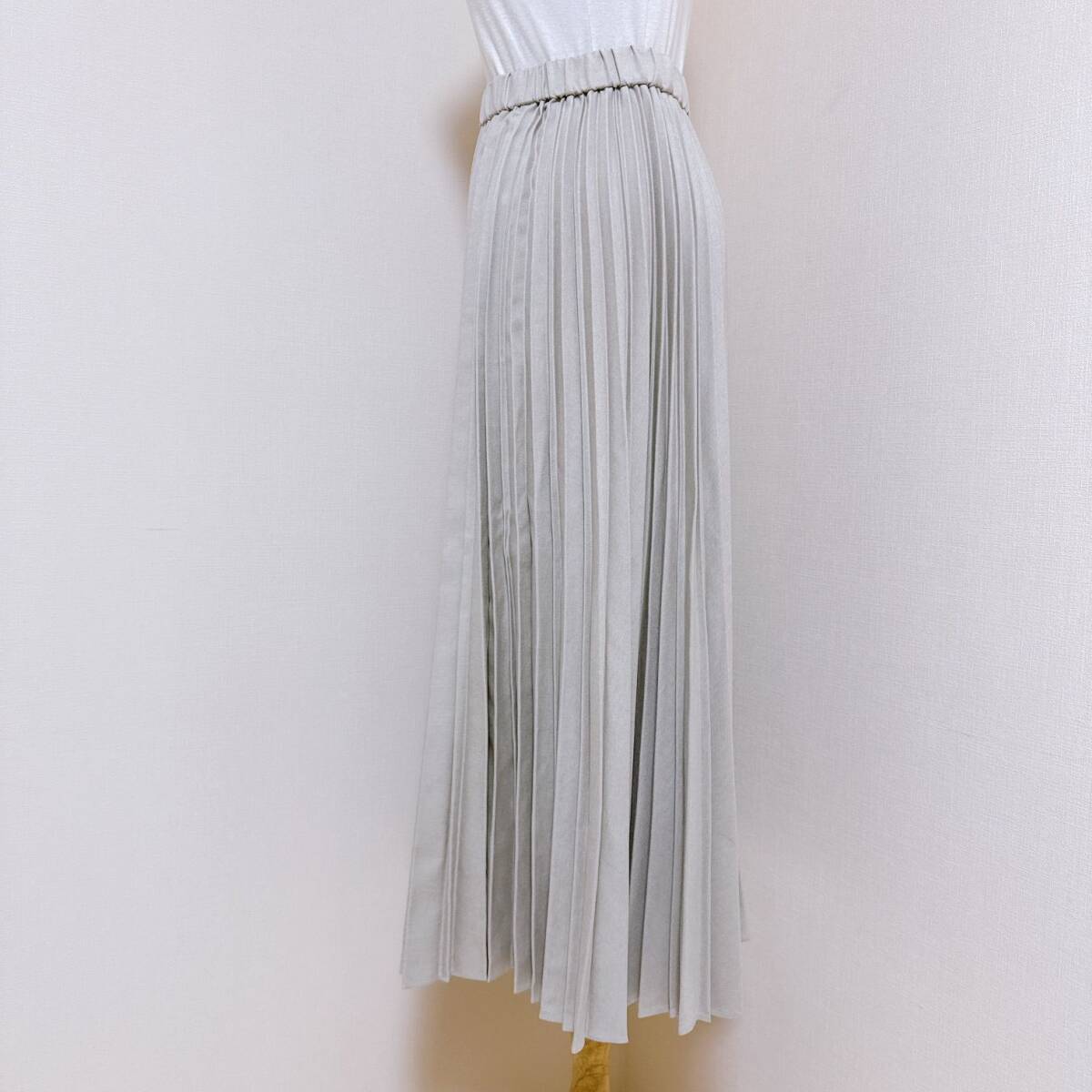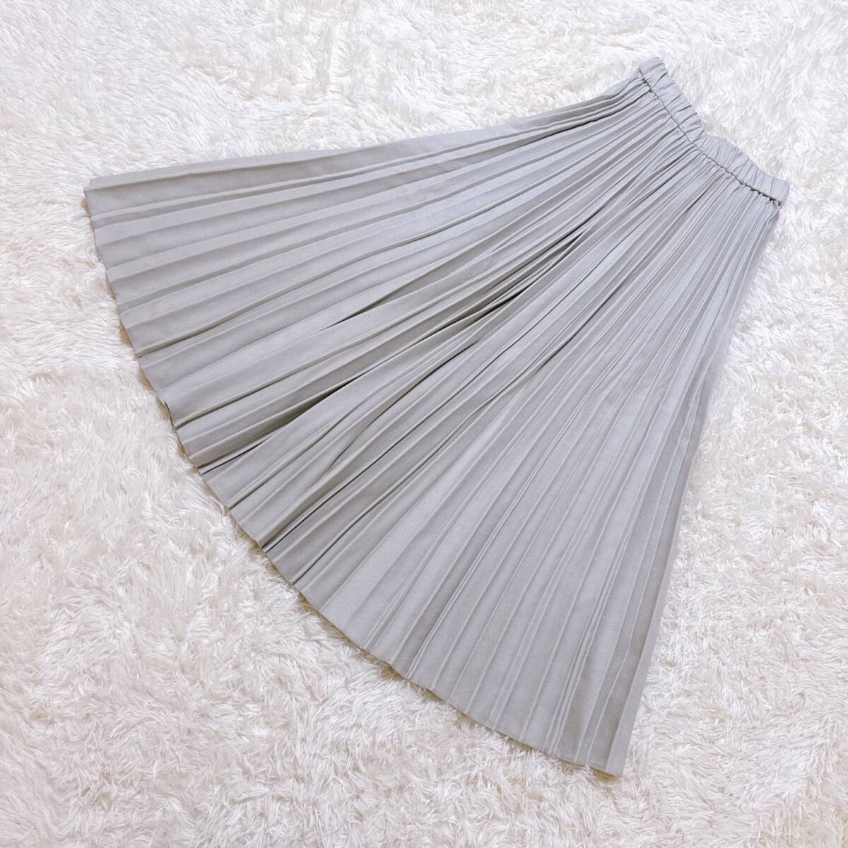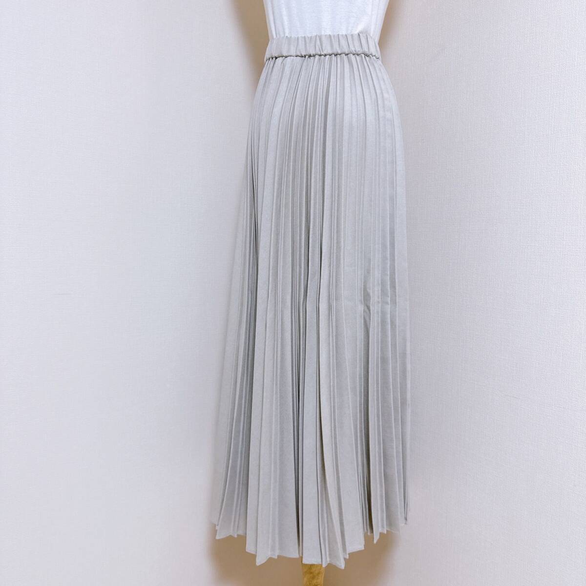 ニコアンド ロング スカート フレア プリーツ ウエストゴム 無地 グレー 3