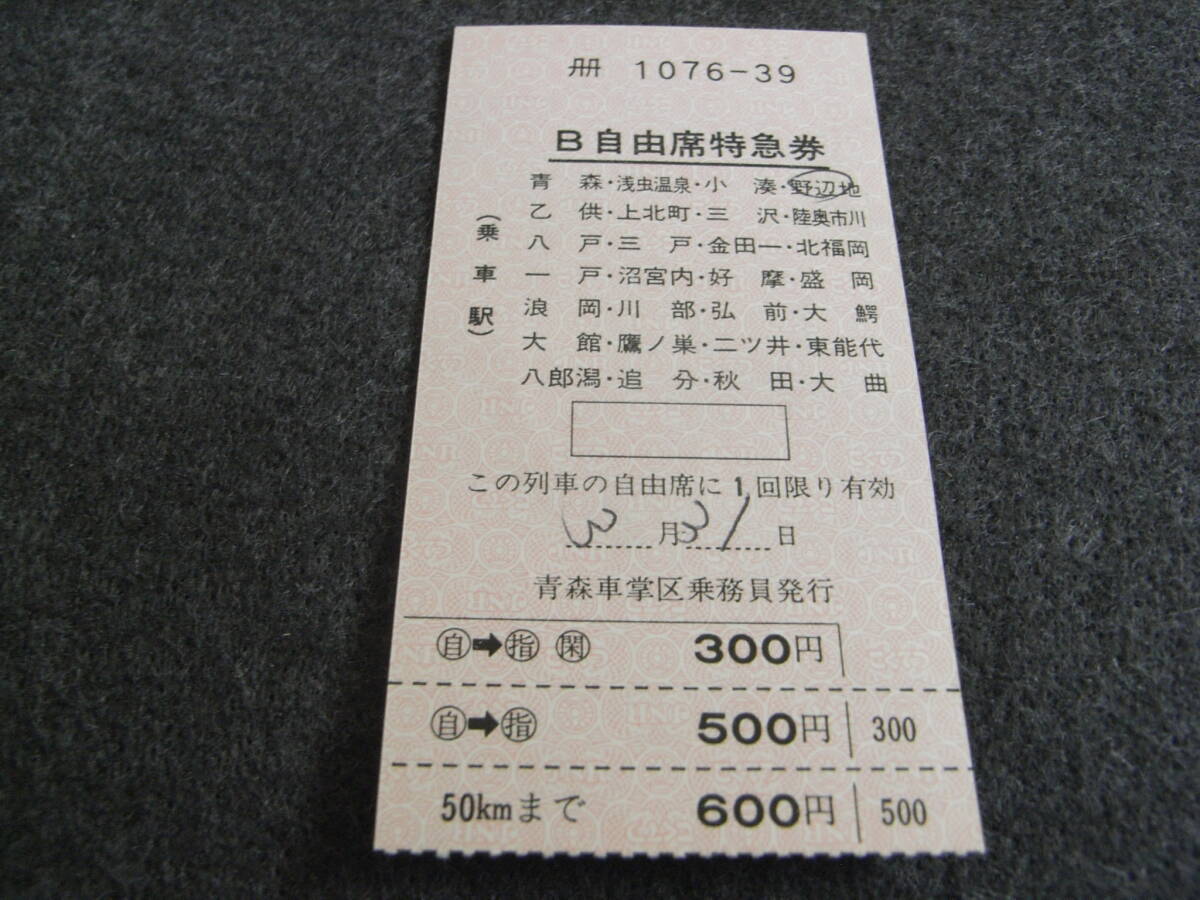 B自由席特急券 青森車掌区乗務員発行 1076-39