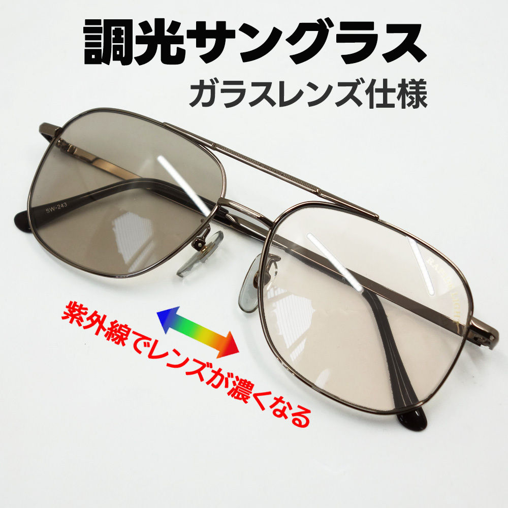 サングラス メンズ 調光 ガラスレンズ ビンテージ レトロ メタル フルリム ブラウン