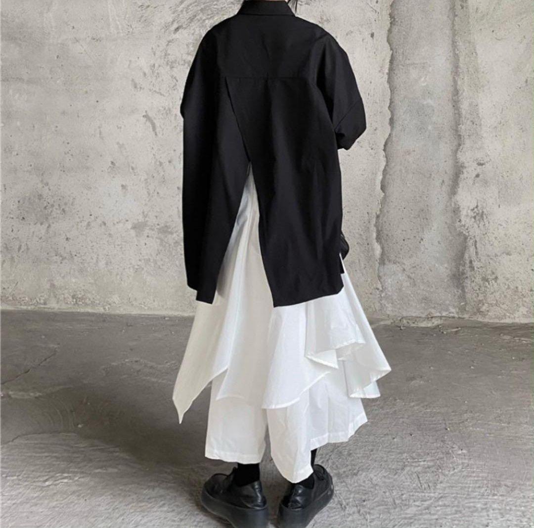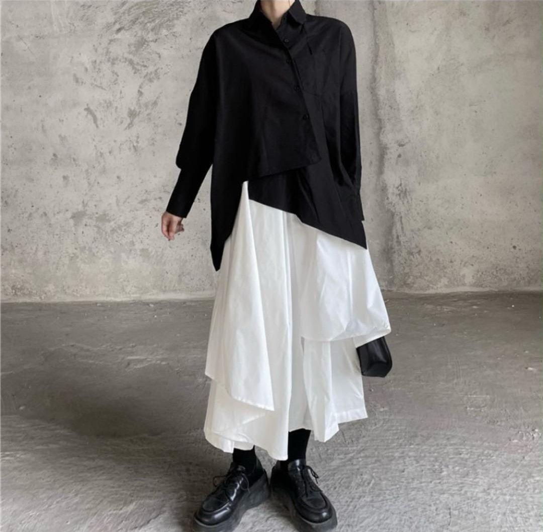 動くたびにふんわり揺れる、イレギュラーヘムが印象的なフレアスカート。