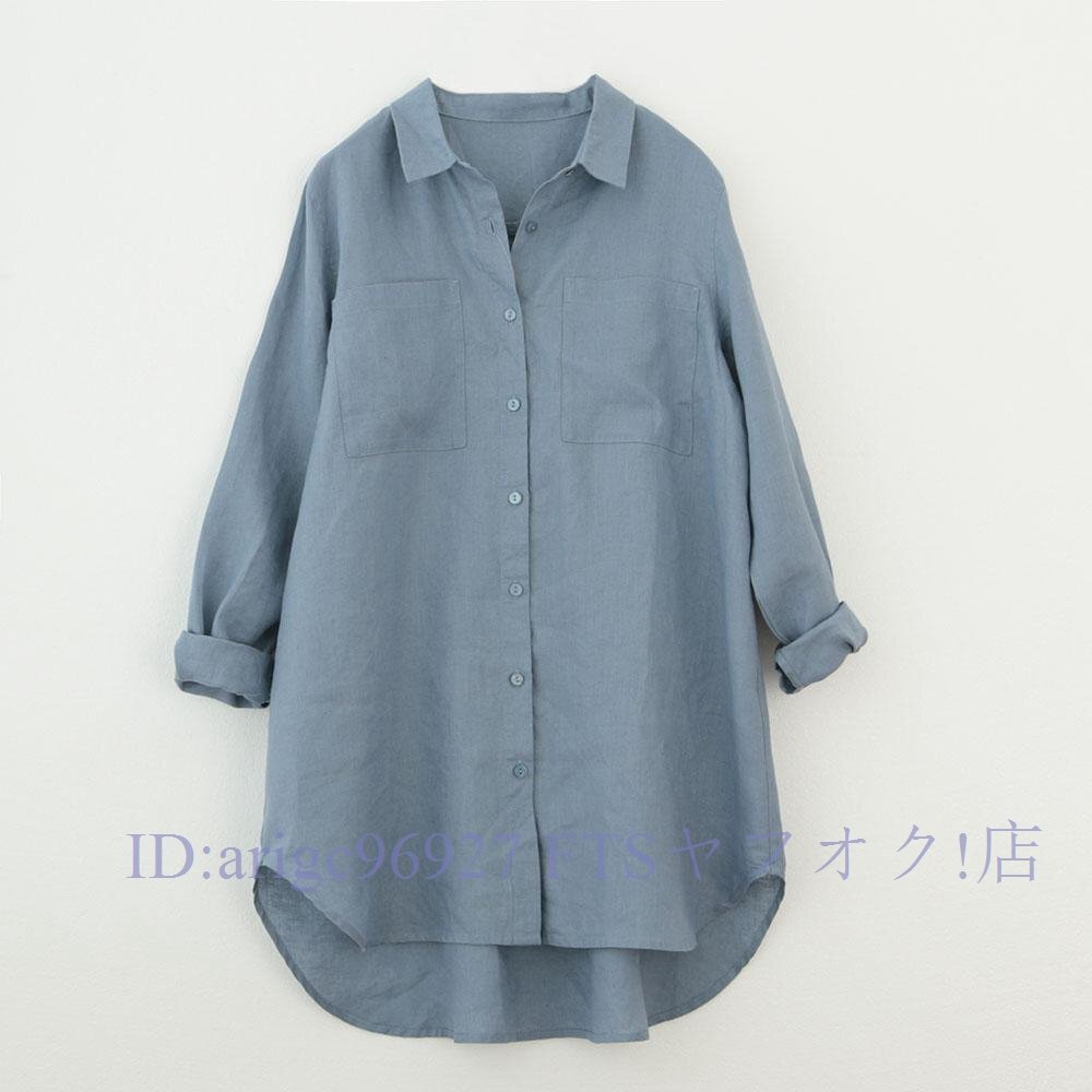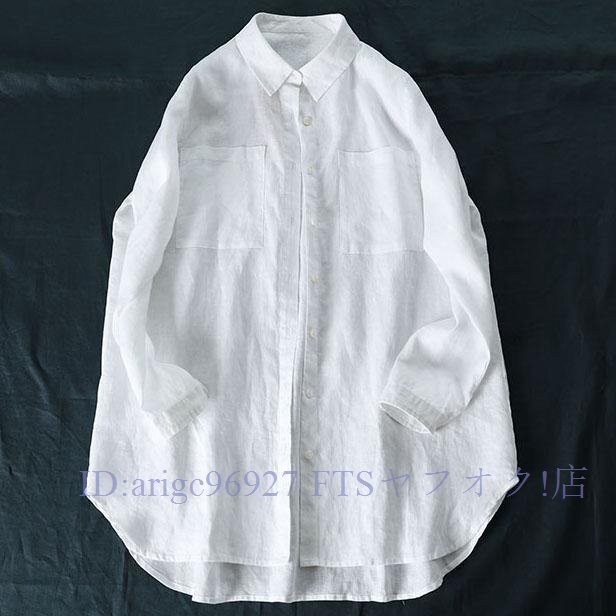B0604☆新品上着 白色 Lサイズ 麻100% リネン 通気性抜群 ゆったりとした ブラウス ワイシャツ 大人可愛 オシャレ チュニック