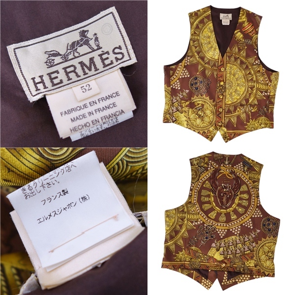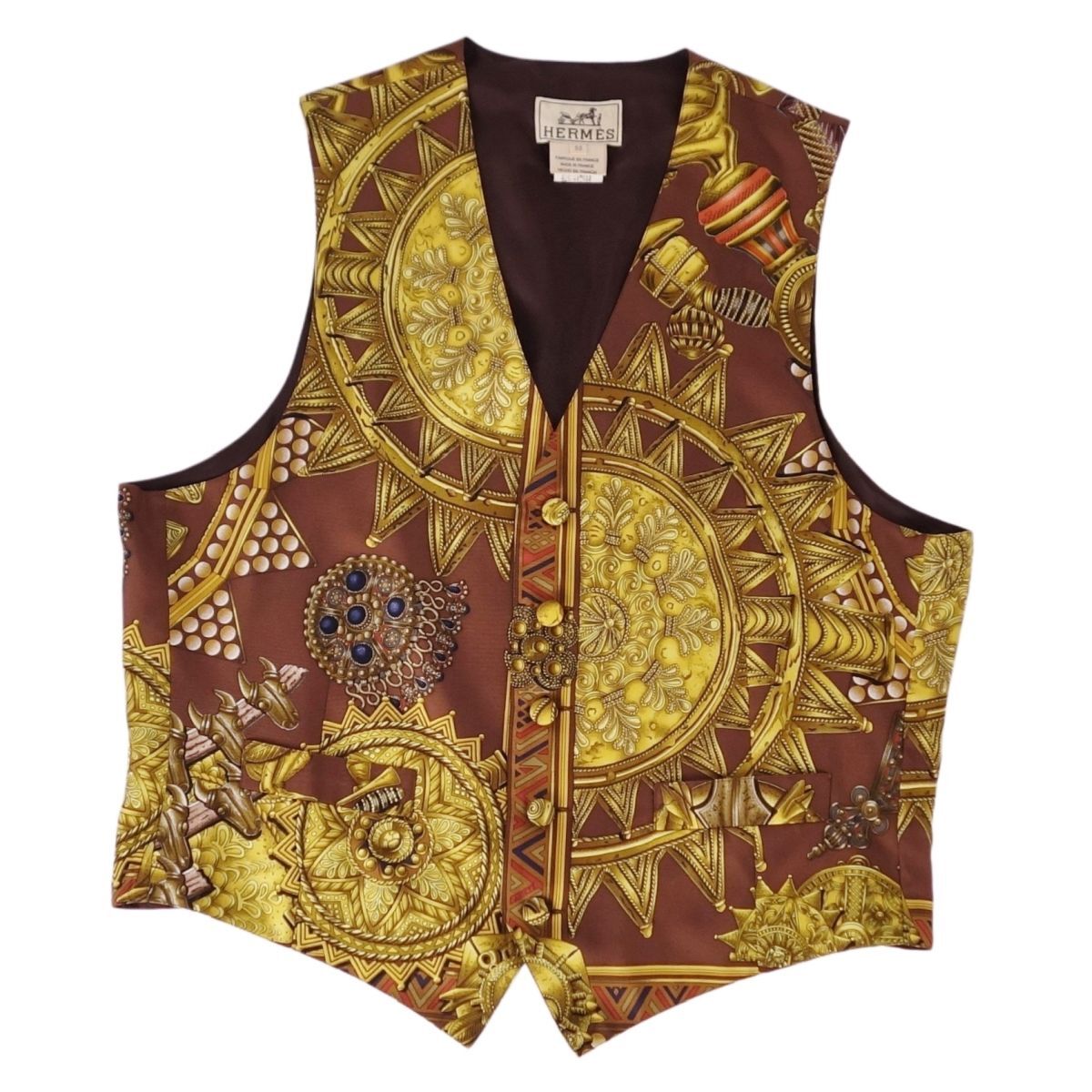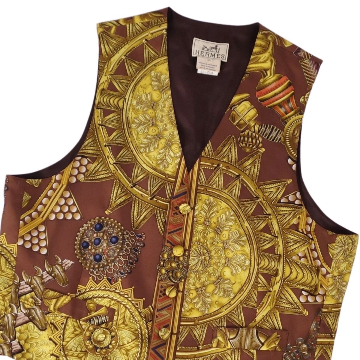 | 美品 Vintage エルメス HERMES ベスト ジレ L'OR DES CHEFS 首長達の金 シルク トップス メンズ 52(L) マルチカラー |