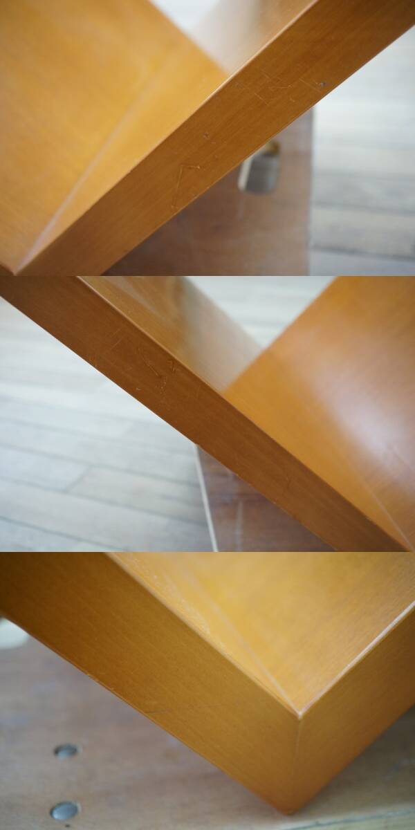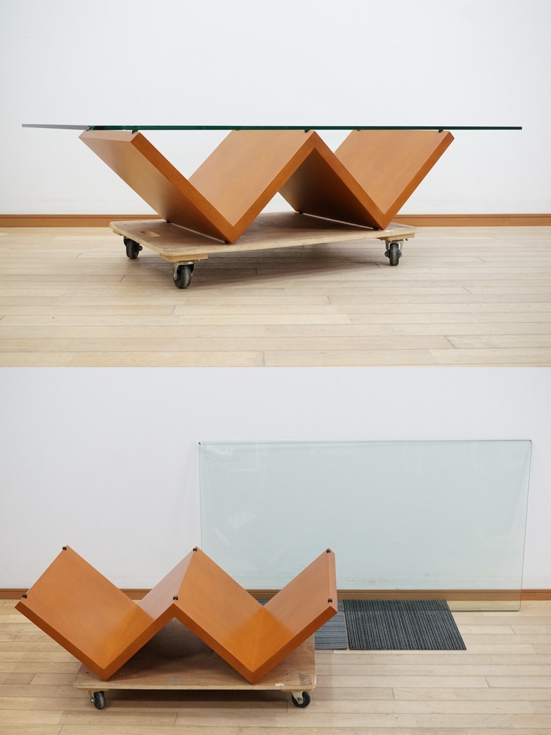 ■東ハ:【arflex/アルフレックス】MONTAGNA モンターニャ テーブル 幅約150㎝ ガラステーブル リビングテーブル デザイナーズ家具■ arflex(アルフレックス)による、 川崎文男デザイン「 MONTAGNA モンターニャ センターテーブル 」になります。 天板は透明感のあるクリアガラス、脚部は安定感のあるW字型。 W字型のベースは見た目のデザイン性もさることながら、 マガジンラックも兼ねる利便性を備えています。 オブジェのような造形美とスパイスの効いたインパクトのあるデザイン。 ベースのVになっている部分は、雑誌やマガジンなどを置くラックとしても使用できます。 デザイン性が高く、空間のアクセントにもおすすめです。 【アルフレックス/arflex】 1951年にイタリアで生まれ、その後1969年に日本へと渡ったモダンファニチャーブランド。 輸入販売とオリジナル家具の製造をスタートさせ、 日本の風土・価値観・住環境に適したモダン・シンプルライフを提唱し、 日本のライフスタイルにフィットした家具を生み出しました。 <arflex>の名の由来は 「arredamenti(イタリア語=家具)」と「flexibility(英語=柔軟性、適用性)」の頭文字から。 イタリアの合理性と日本の価値観や住環境に適したものづくりによって、 長くお使いいただける家具と、 心豊かに暮らすためのライフスタイルを提案。 「イタリア生まれ日本育ち」ワンランク上の日常を提案してくれる、 日本向けモダンファニチャーの先駆け的ブランドです。 【サイズ】 ・全体(約)高さ34.5 × 幅150.0 × 奥行80.0 cm ・ガラス板 厚さ (約)12.0 ㎜ ※脚ベースにガラス天板をのせる固定の無い仕様になります。 中古のお品となります。 付属品は写真にあるものが全てです。 使用に伴うガラス天板のヒビ割れ(ヒビの長さ約17.5cm)、ヨゴレ・キズ・ケズレなどが複数、 キズ補修のペン剤跡がございます。 商品画像をよくご確認の上、ご参加ください。 [管理No.25052683R1] |