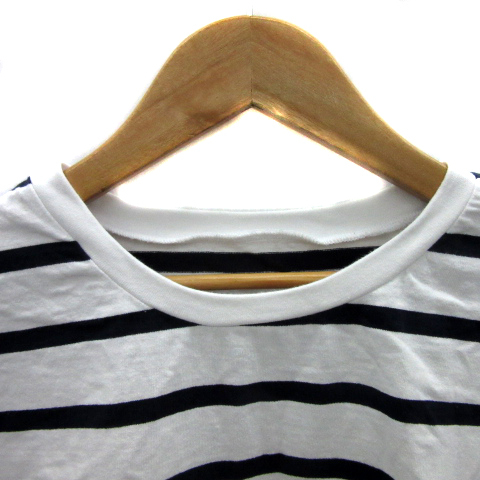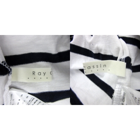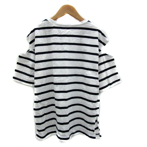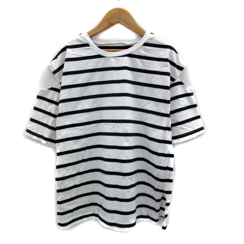 レイカズン カットソー 半袖 オープンショルダー ラウンドネック ボーダー柄 オーバーサイズ F 白 ホワイト 紺 ネイビー レディース