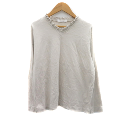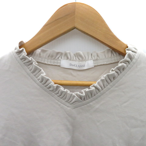 ドゥクラッセ DoCLASSE カットソー 長袖 Vネック フリル XXL 大きいサイズ グレージュ /YK45 レディース