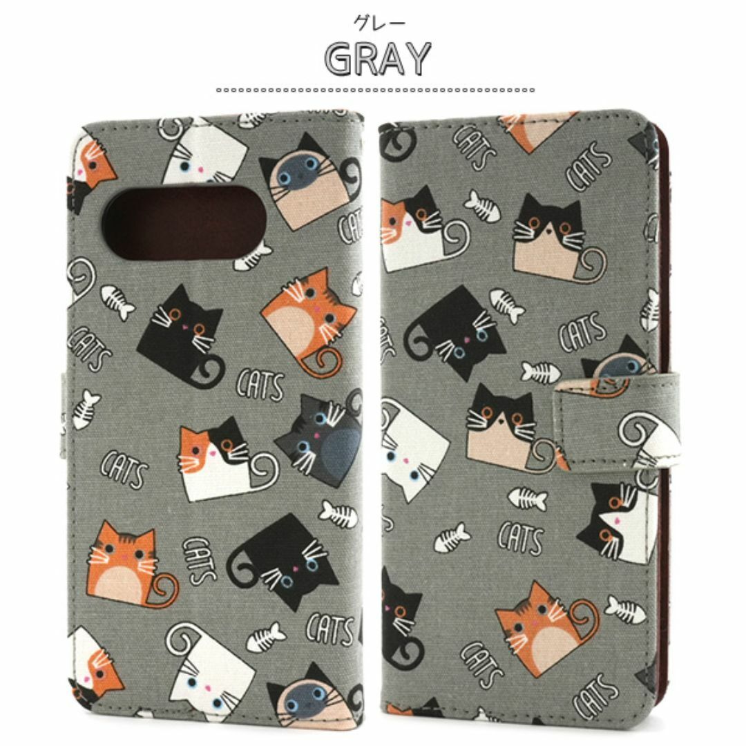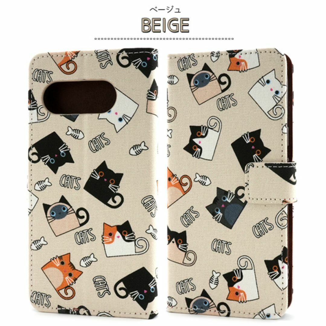 食いしん坊な猫ちゃん達を全面にプリントした生地を使用した手帳型ケースです。