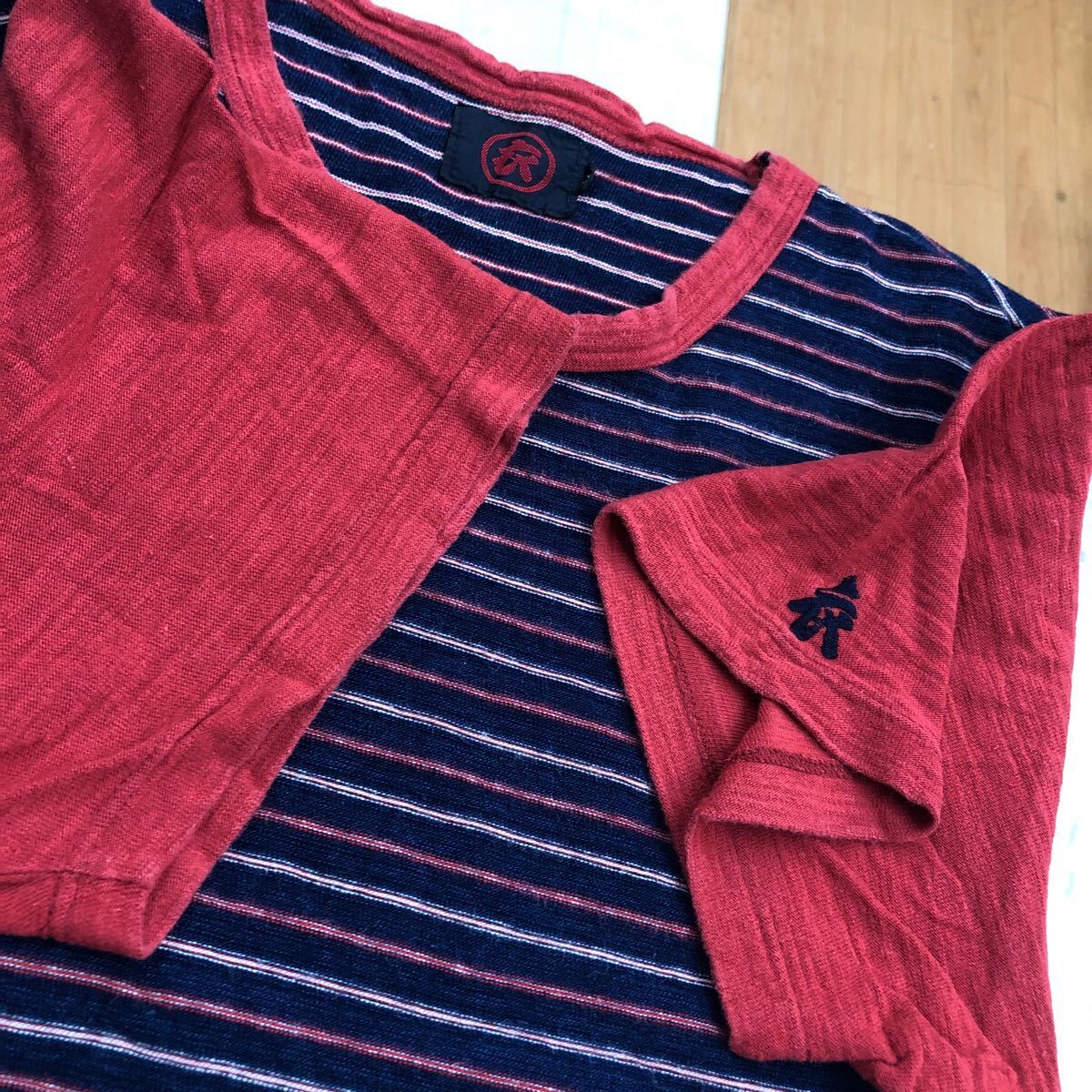 衣 コロモ ボーダーTシャツ 温故知新 コットン パイル 京都 赤×ネイビー メンズ YF321