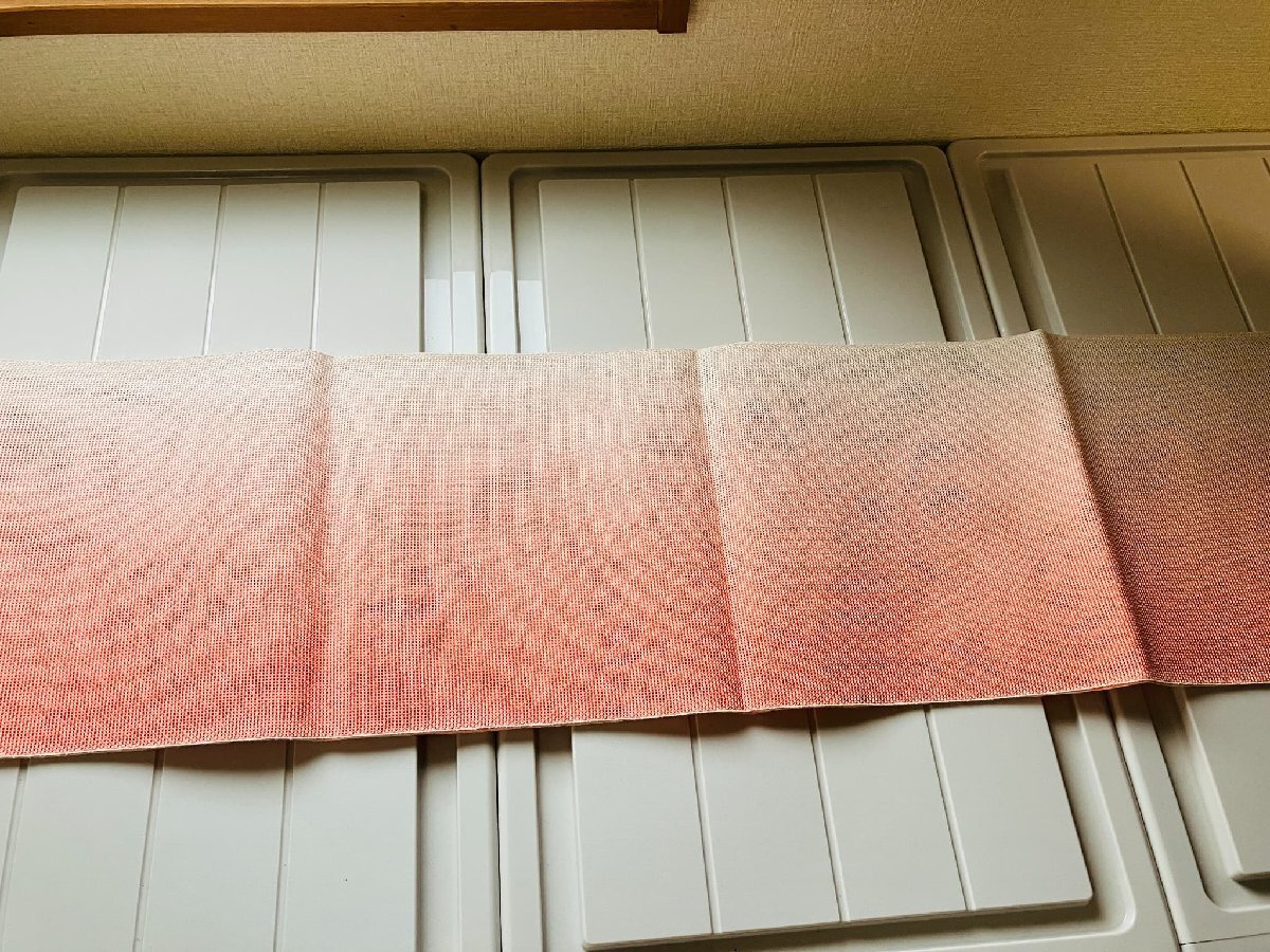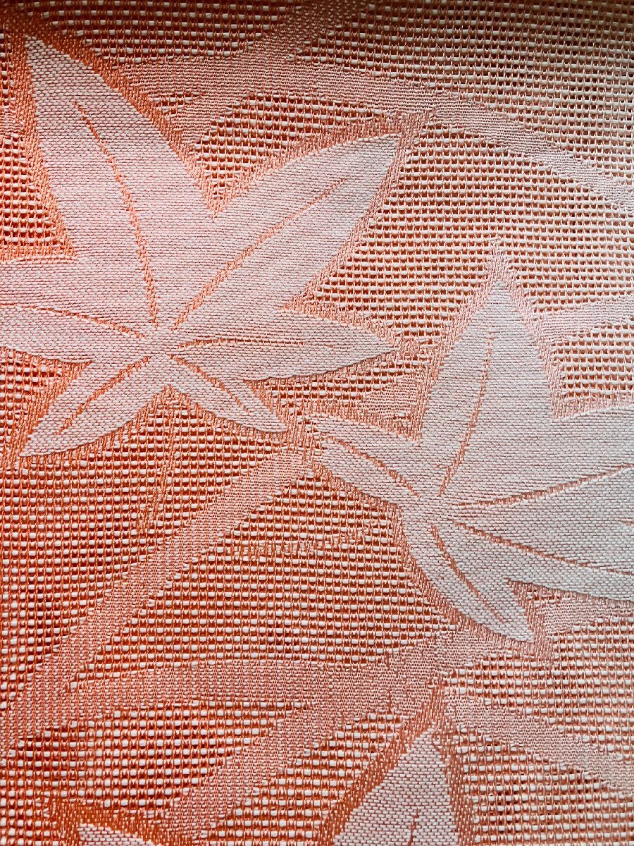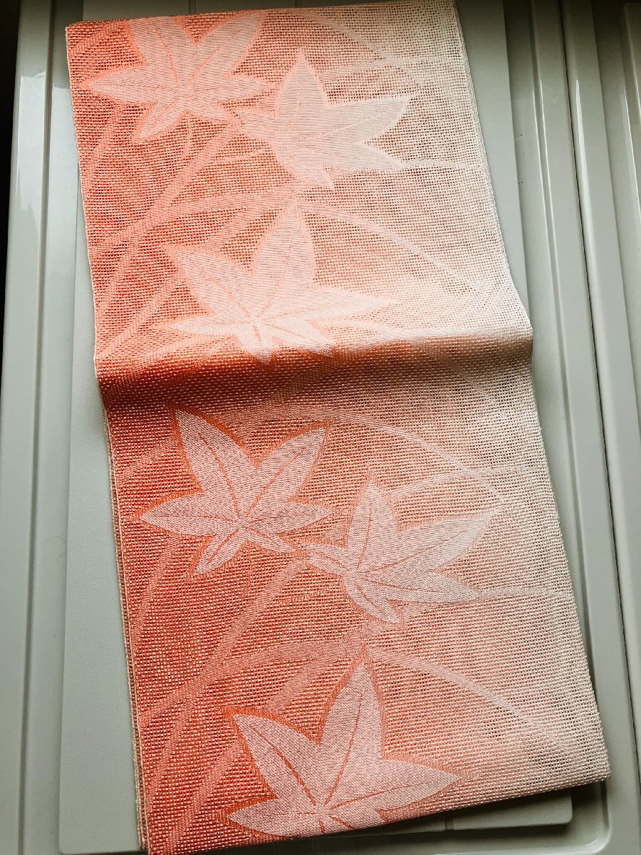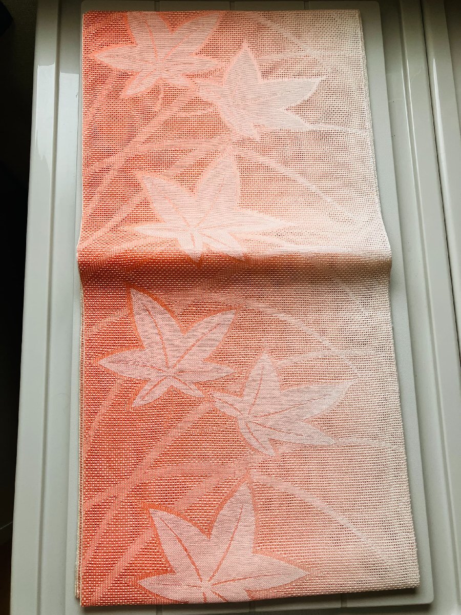 名古屋帯 シンプルな柄 草花文 紅葉 オレンジ色系 正絹 幅約30cm 着物帯 TCS着物 W11