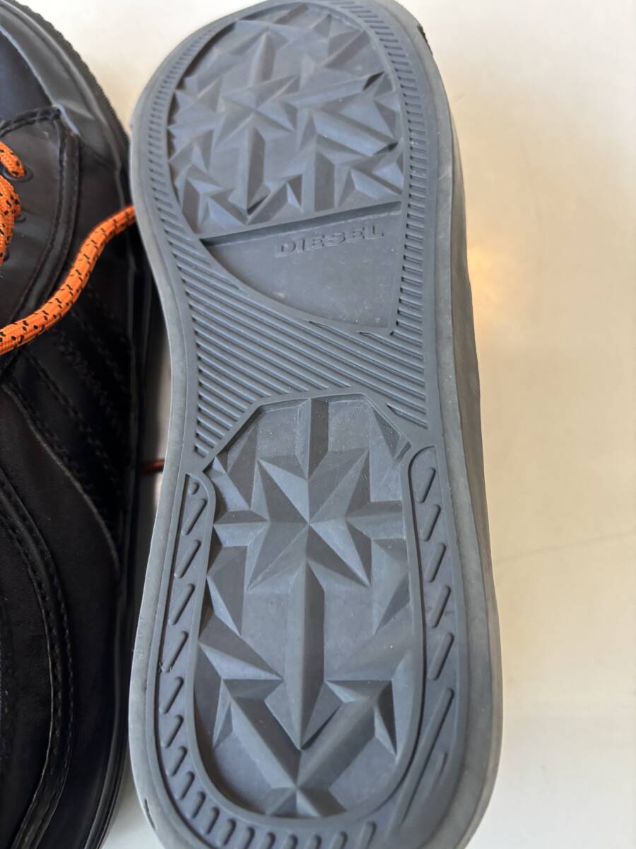 美品です。ディーゼル DIESELブラックビニールシューズです。カッコイイです。普段は27.5ぐらいですが28.5センチでもOKです。どなたか使用してください。ノークレノーリターンでお願いします。
