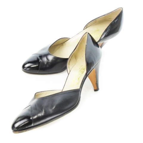 サルヴァトーレフェラガモ Salvatore Ferragamo パンプス セパレート ハイヒール アーモンドトゥ レザー 革 切替 黒