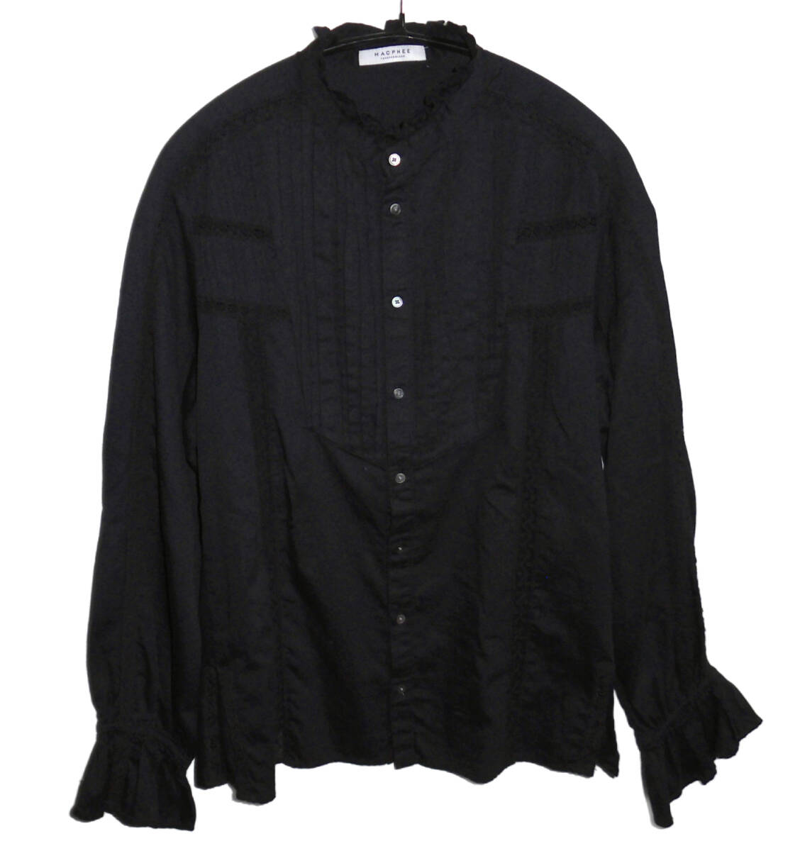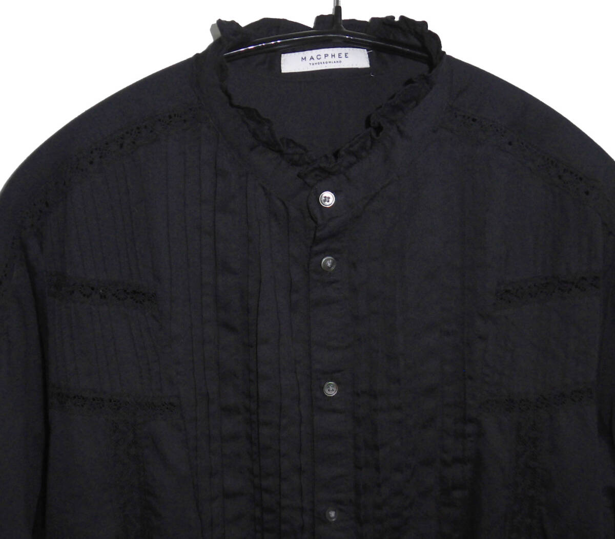 ◆美品 TOMORROWLAND MACPHEE マカフィー 24ss ビンテージローン スタンドカラーブラウス シャツ 36 BLACK