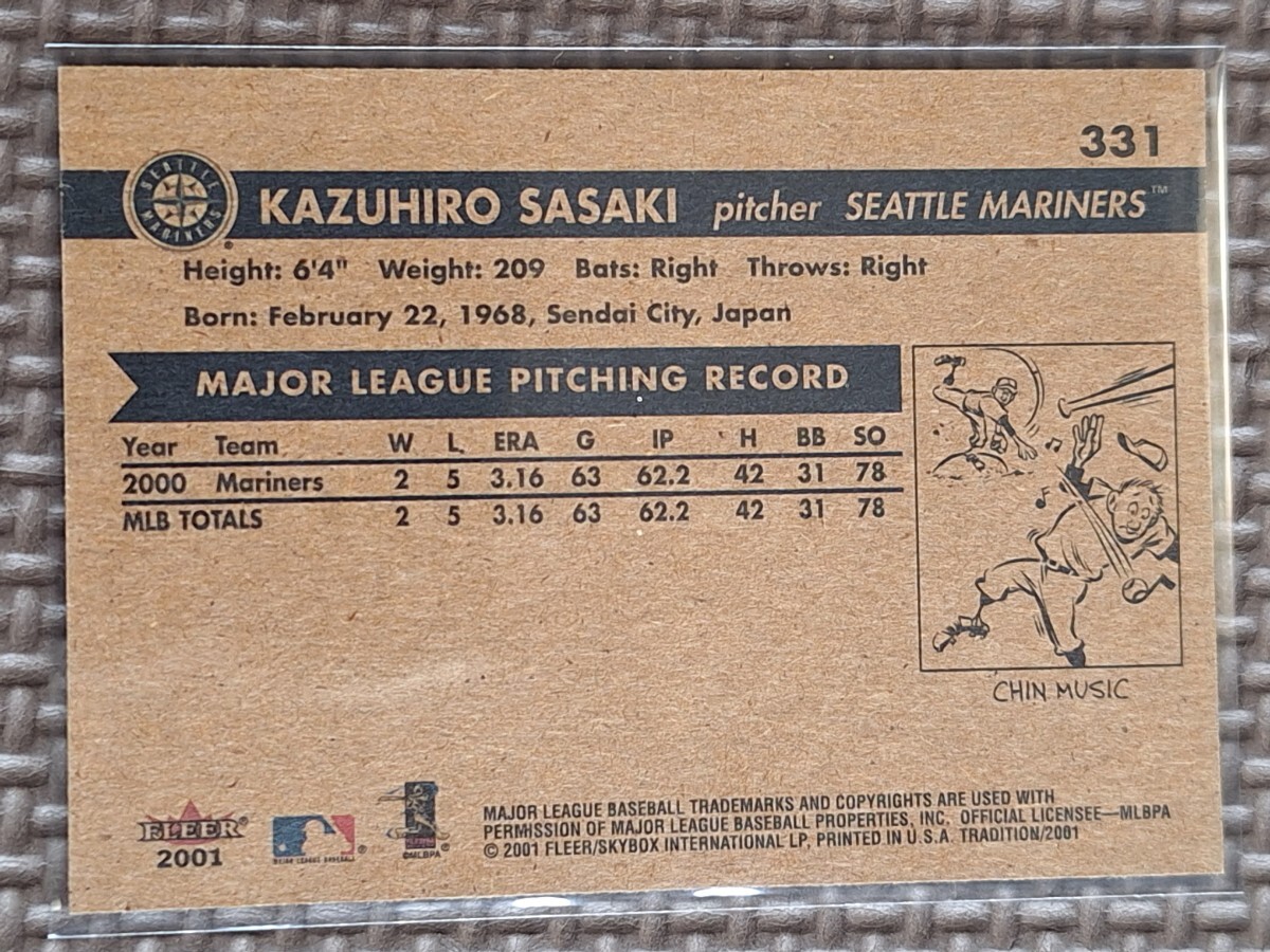 2001 Fleer Tradition #331 KAZUHIRO SASAKI Seattle Mariners Yokohama Taiyo Whales
