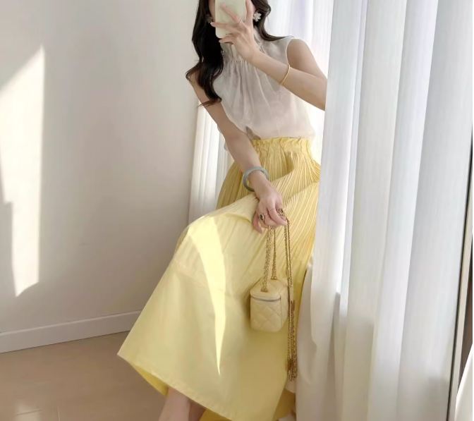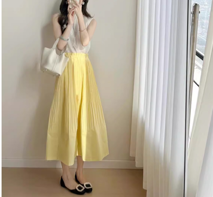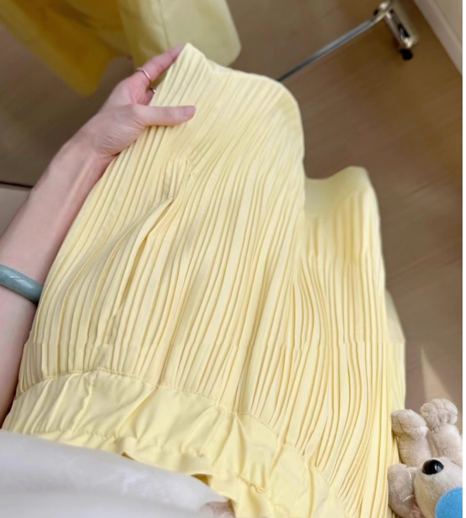 レディースプリーツスカート黄色S