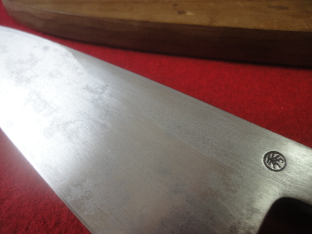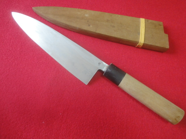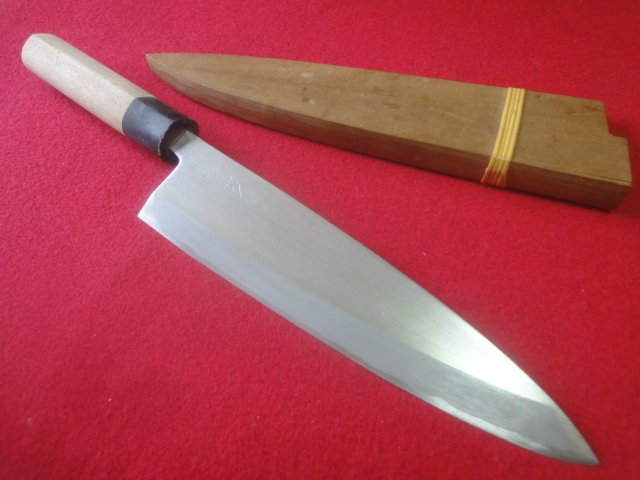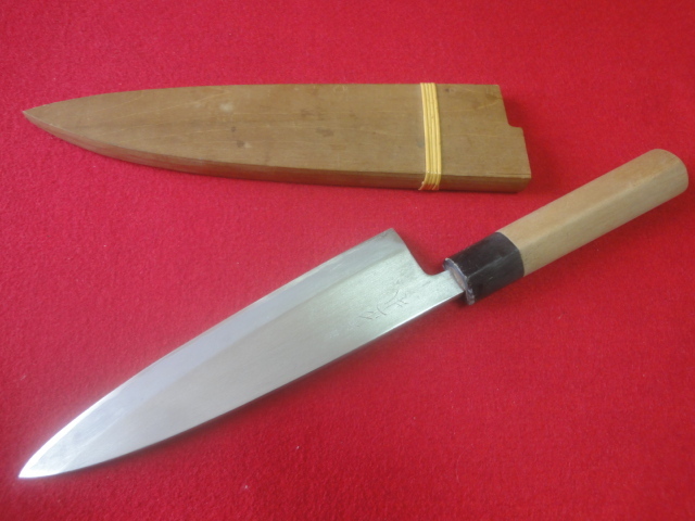 【築地正本】相出刃包丁 刃渡22.2㎝ 全長37.8㎝ 峰厚8.4mm ※鞘付 ※片刃 中古品 全国一律送料1200円