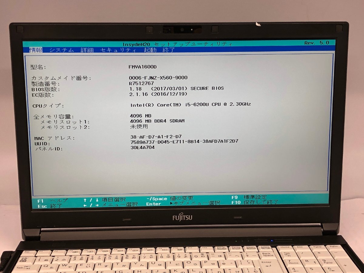 ジャンク/ FUJITSU FMVA1600D LIFEBOOK A576/P Intel Core i5-6200U メモリ4.1GB ストレージ無し 【K14936】